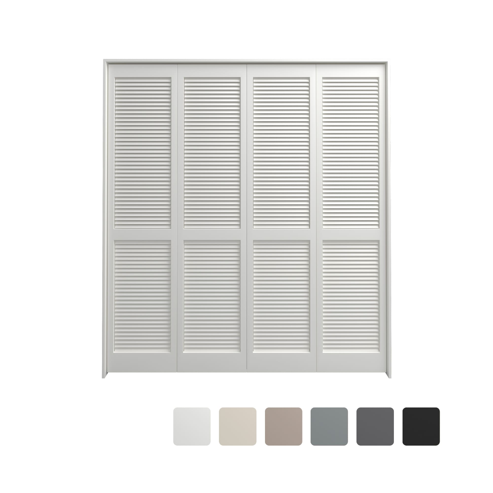 無垢のパイン材を塗装で仕上げた収納扉です。 細い枠とピッチの細かなルーバーの繊細な見た目が、複数枚並べても一部分に取り入れても絵になります。ただ中身を隠すという機能を超えて、目にして嬉しい佇まいの美しい折れ戸。
