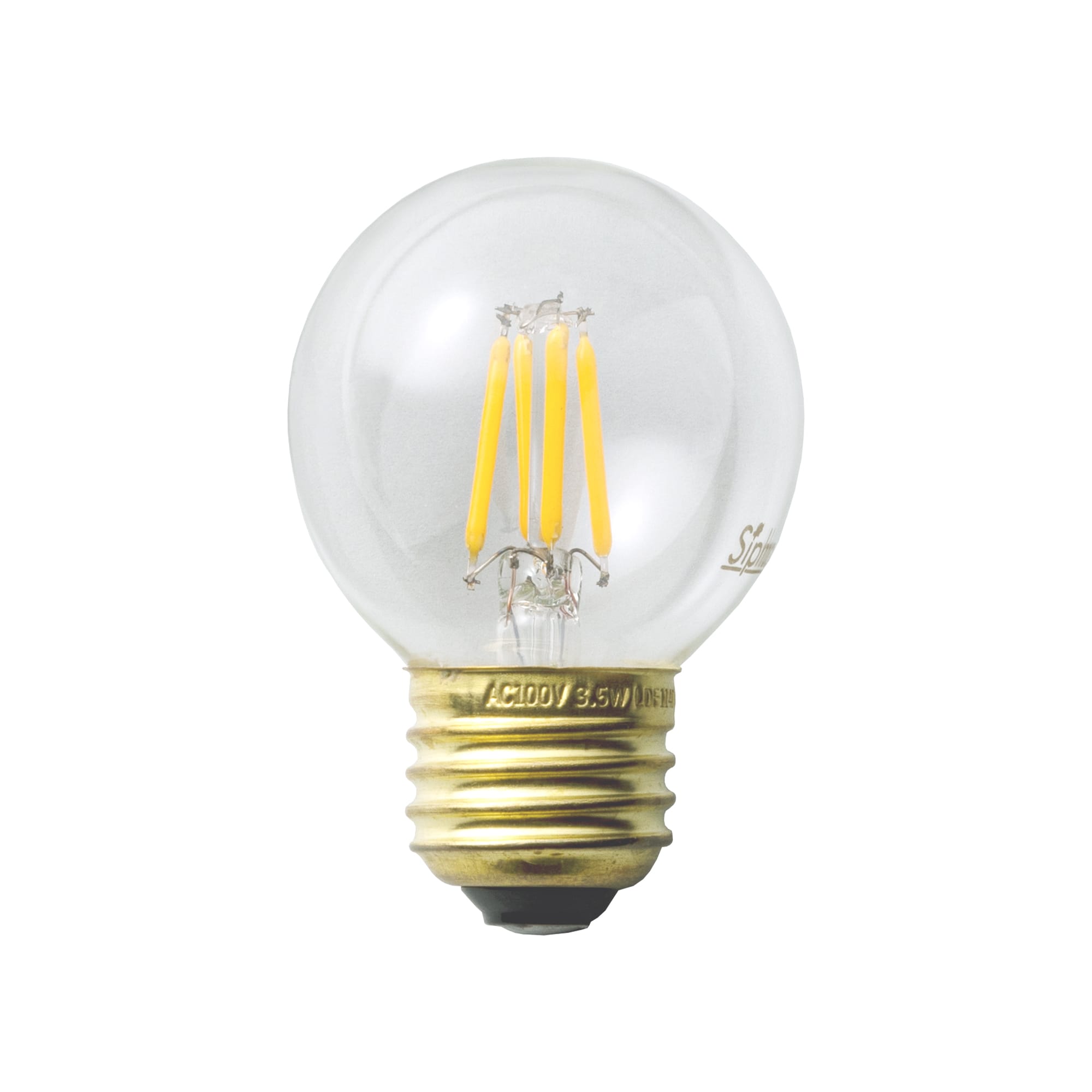 こちらは、口金サイズが「E26」の直径50mmのボール球。一般的な電球よりやや小ぶりのかわいらしいサイズです。トイレなどの小さな空間や、寝室などに合わせやすい明るすぎず暗すぎない40W相当。広い空間で複数灯並べて使うのもおすすめです。