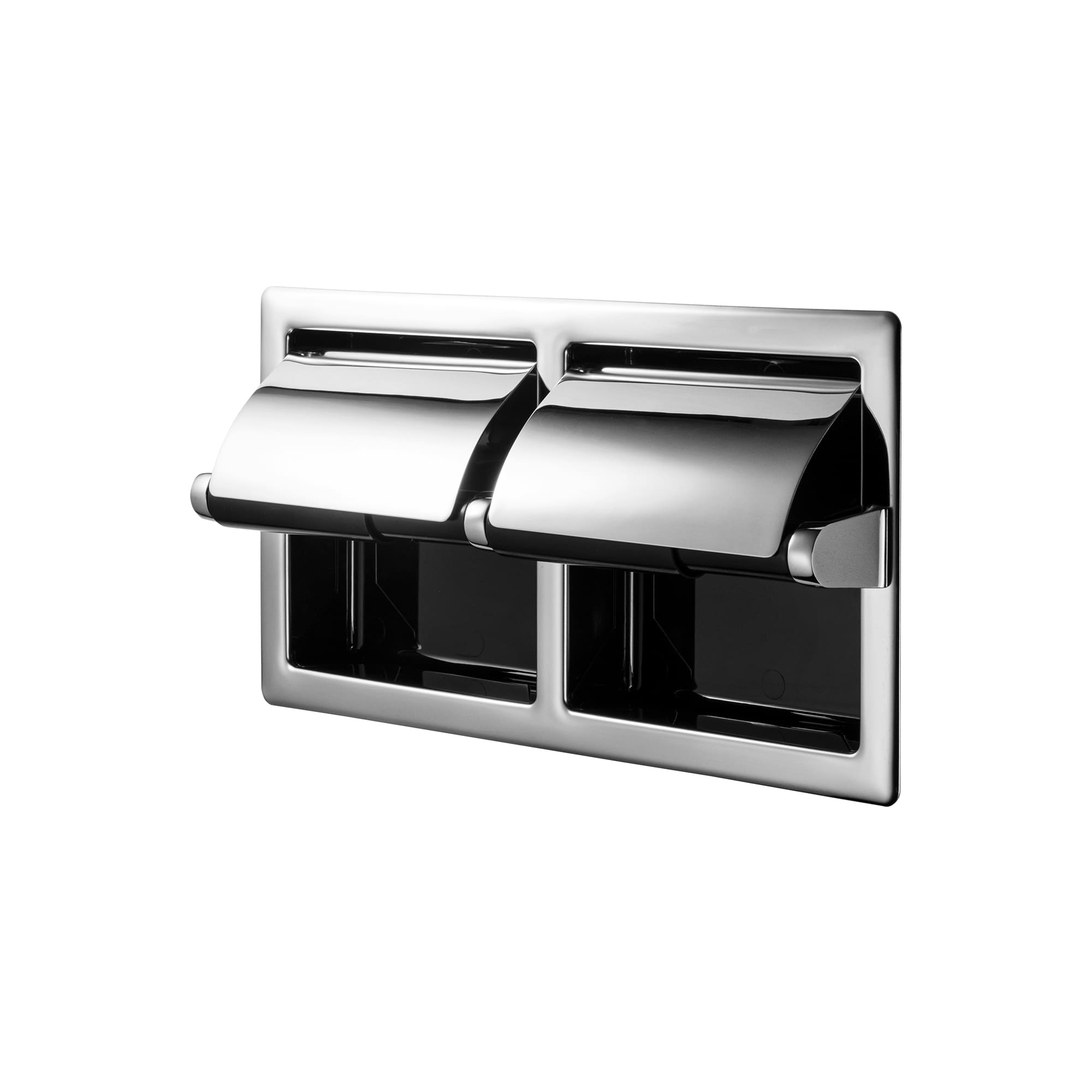光沢のある太めのクロームでフレーミングされたペーパーホルダーです。壁に埋め込むタイプで、住宅ではあまり見慣れないかもしれません。