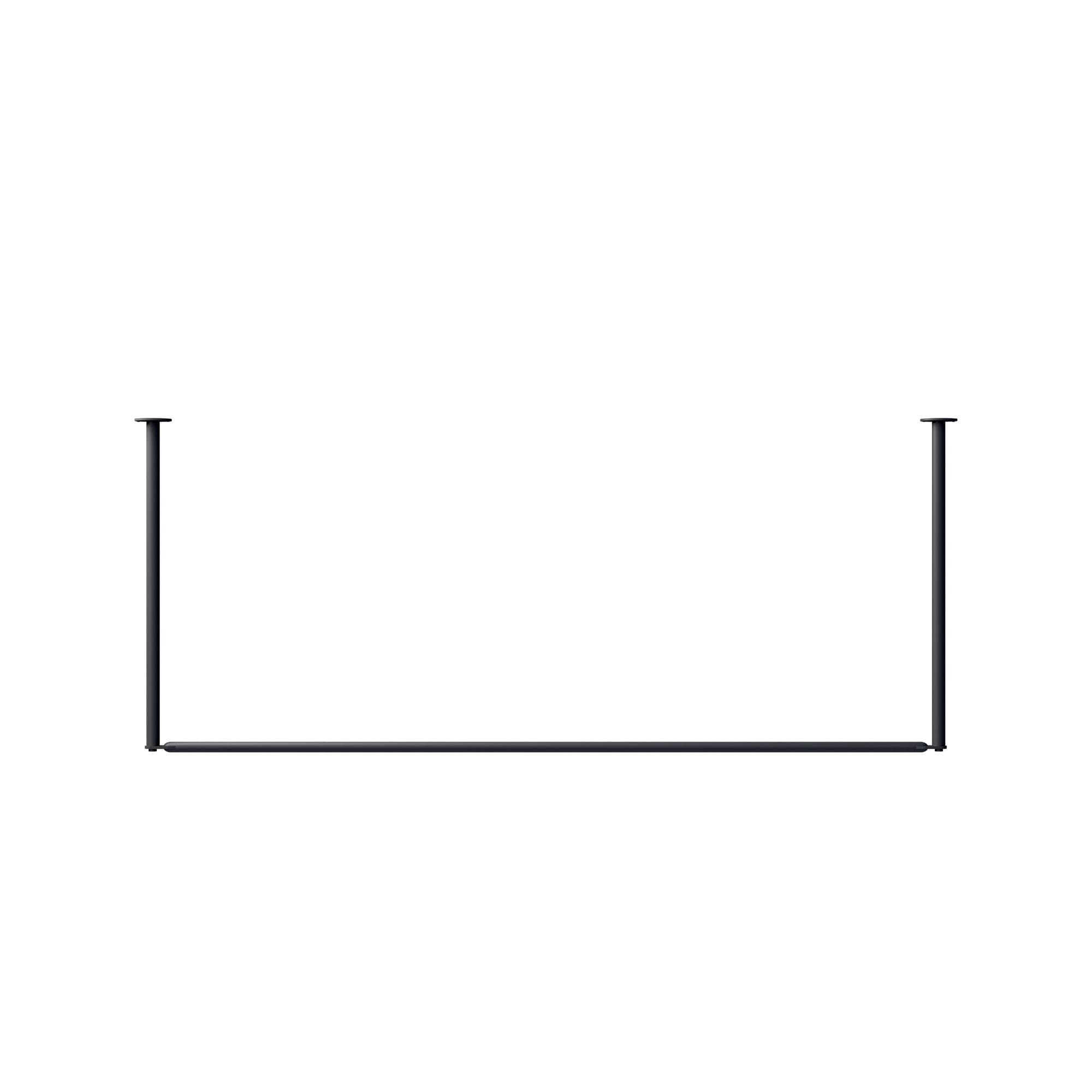 ブラックで細身なシルエット。使い勝手に合わせてカタチを拡張できる天井付けのハンガーパイプです。