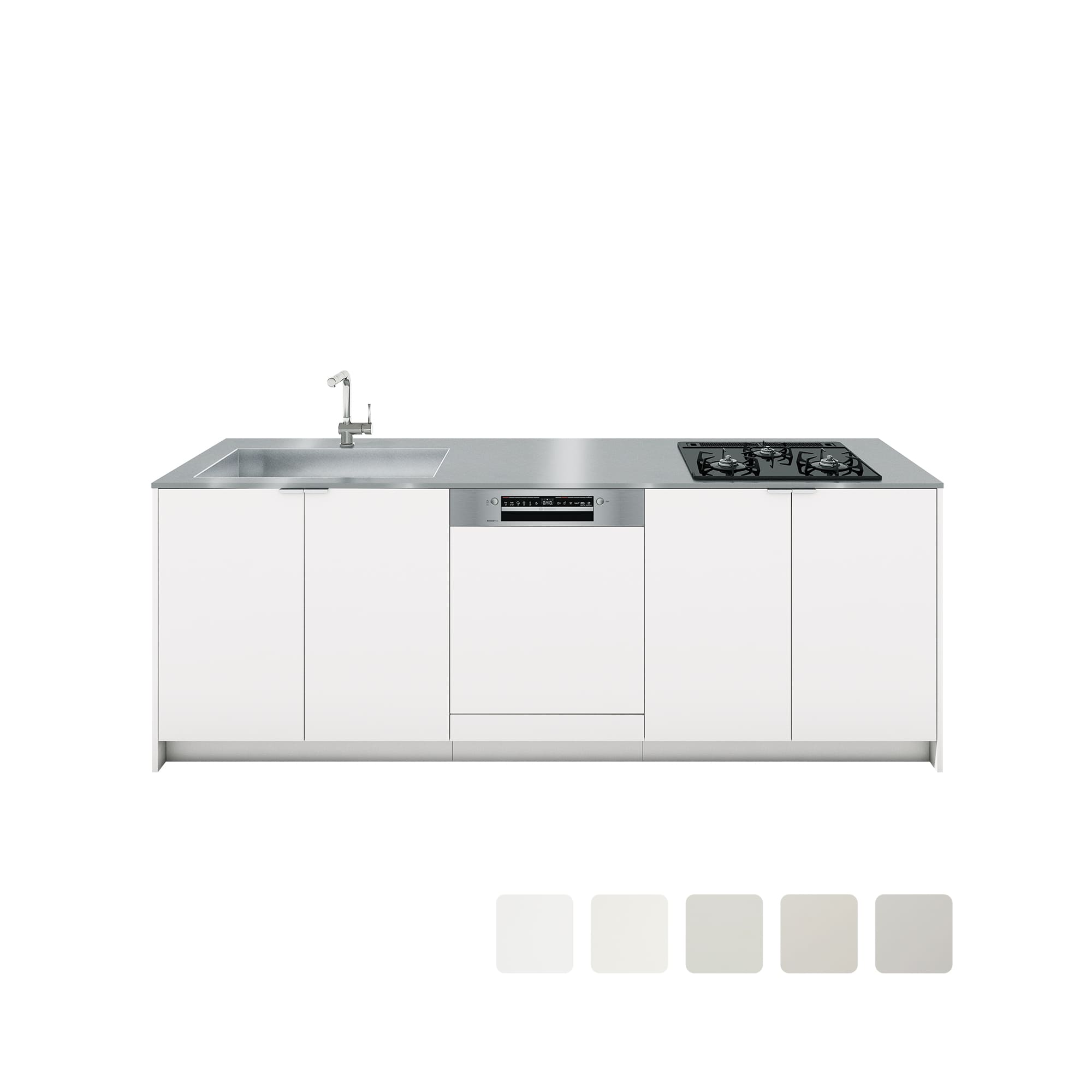 食洗機については、キャビネットと同じ材質の面材をキッチン本体の付属品としてお届けしますので、機器は別途ご用意いただいても構いませんが、機種が同一でなければ取り付けられませんので、その点のみご注意ください。