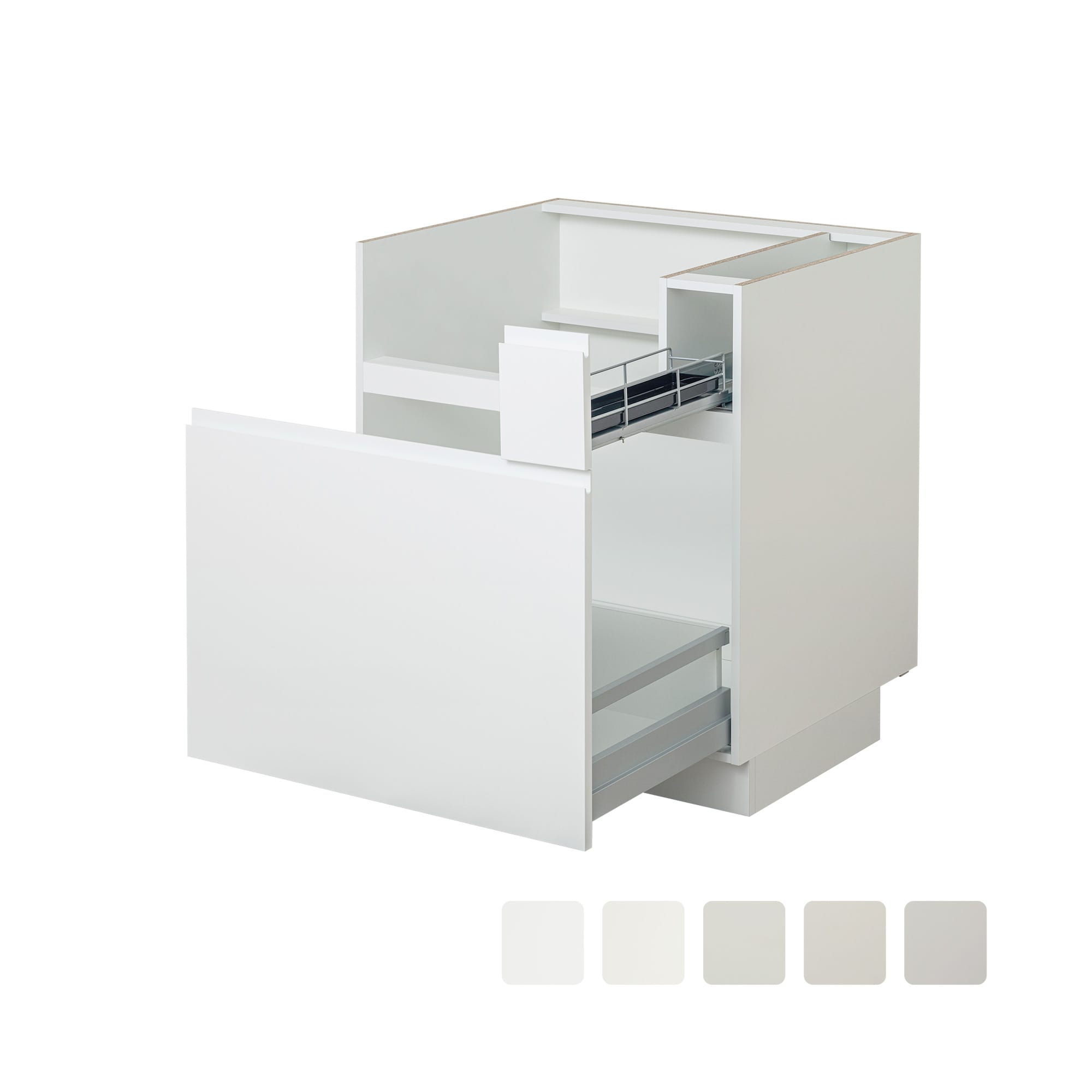 扉の色に関わらず、キャビネット側面・内側の色はホワイトです。