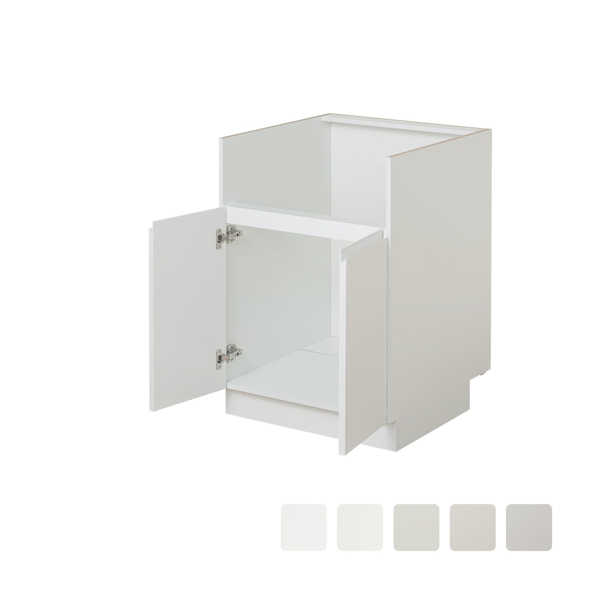 扉の色に関わらず、キャビネット側面・内側の色はホワイトです。