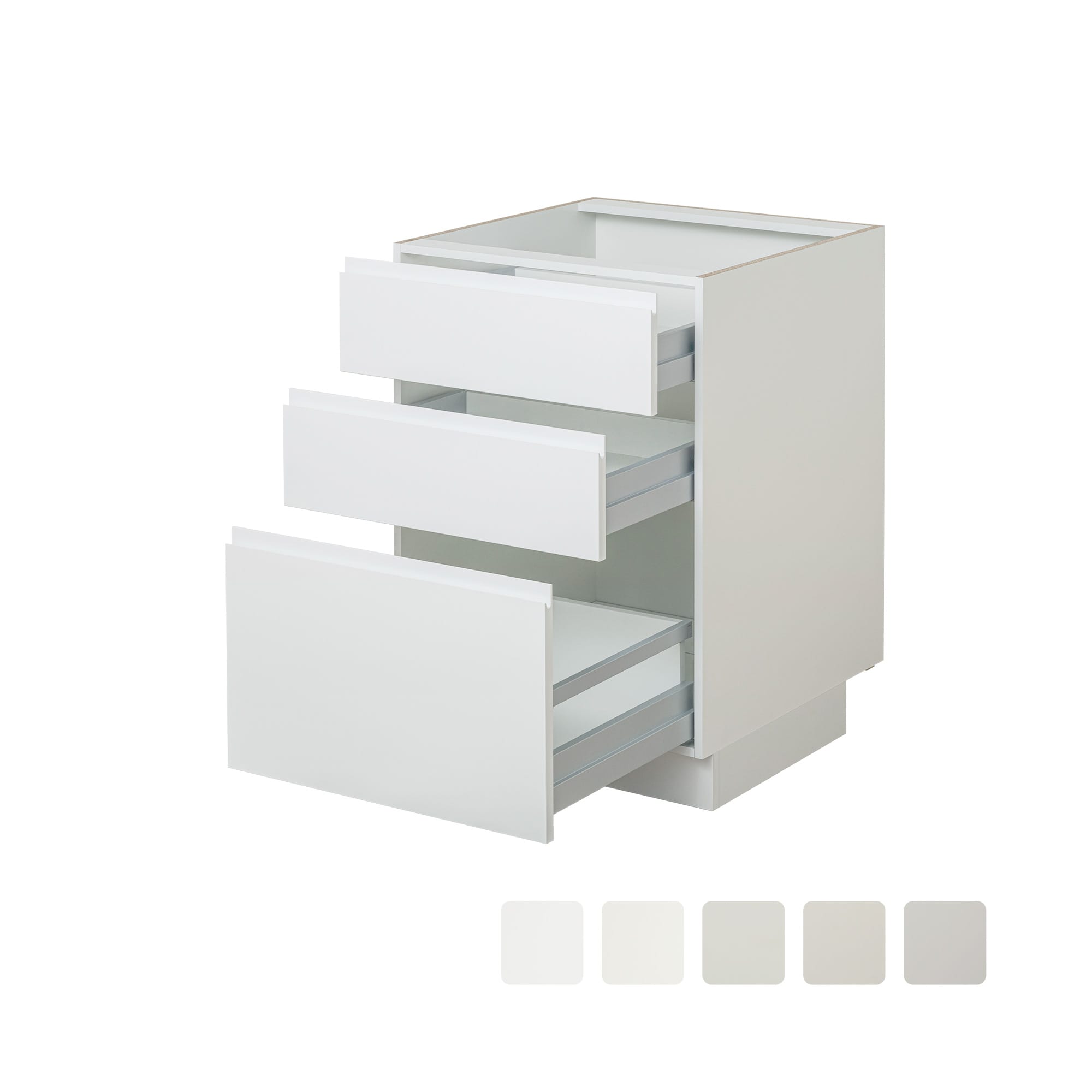 こちらは幅がサイズオーダー可能な「オーダー引き出し3段(浅2深1) W200〜900」キャビネットのページになります。