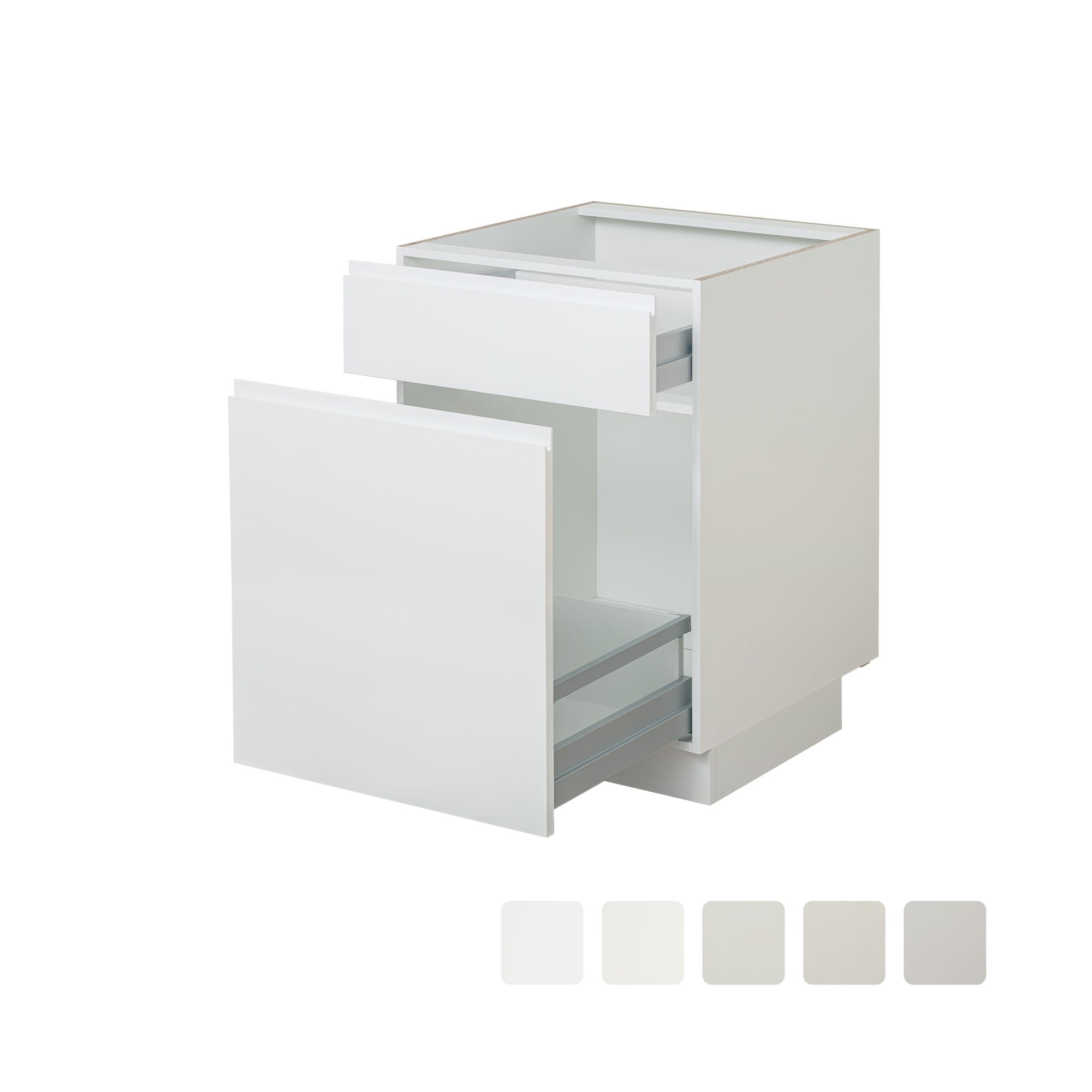 扉の色に関わらず、キャビネット側面・内側の色はホワイトです。