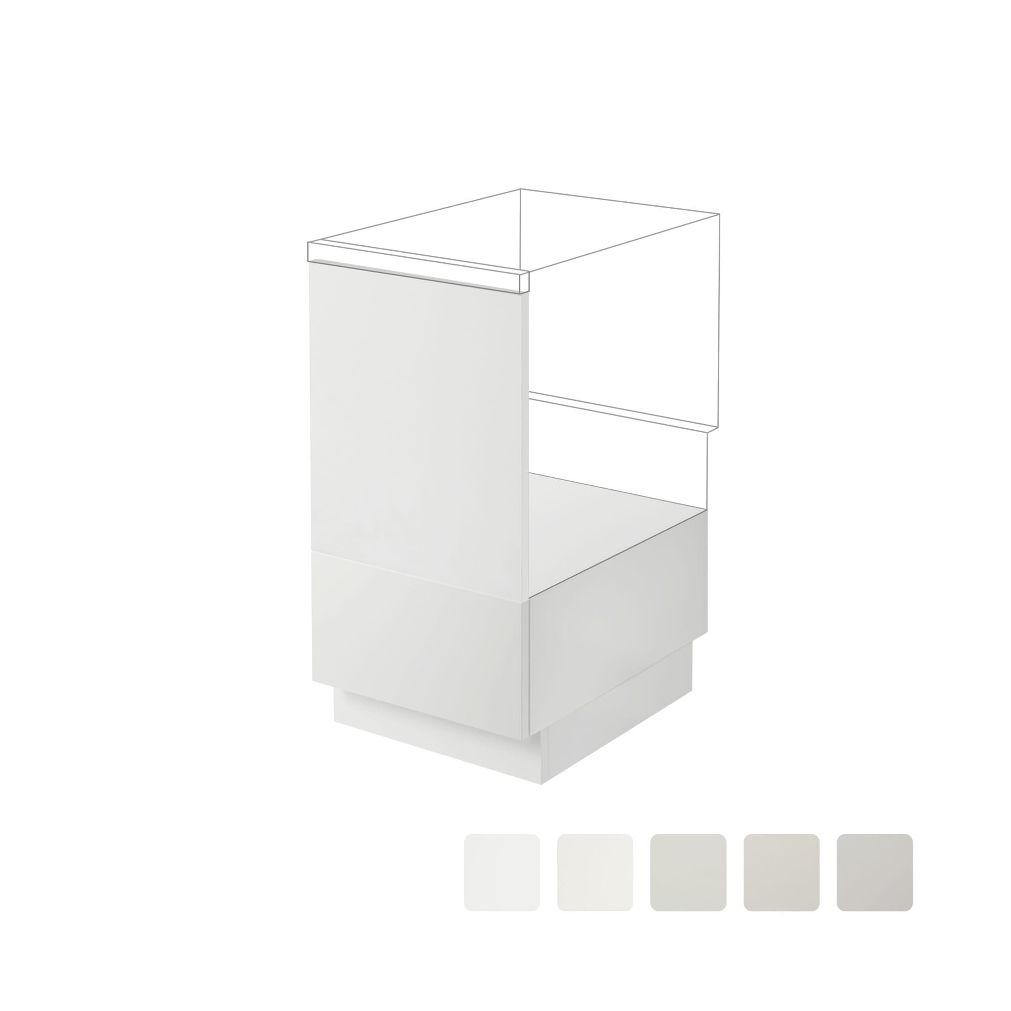 | サイズ | 面材:W446×H507×T20mm 下台:W450×D580×H294/324mm ※ キャビネットの高さH844/874用(Hは2種類から選択) T16mmのステンレス天板と組み合わせると、高さはH860/890になります。 |