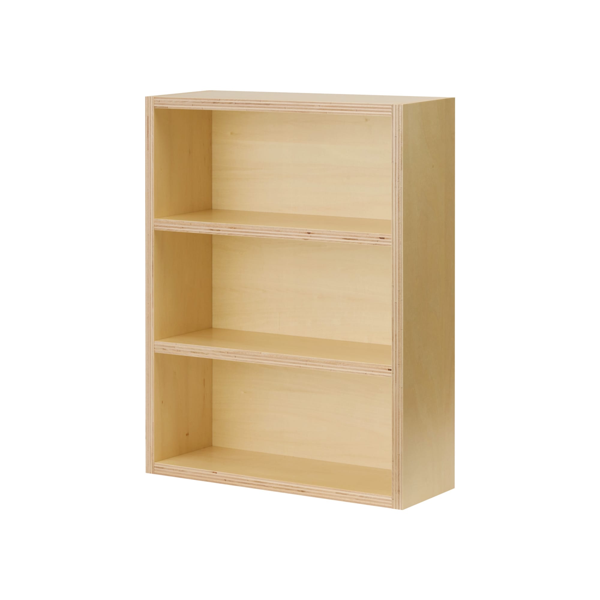 色は白い壁になじむホワイトと、木口の積層断面が特徴のシナの2色。幅は450、600、900、1200mmの4サイズ。高さは600mmで、段数が2段と3段からお選びいただけます。2段はワイングラスやコーヒーミルなどの高さがあるもの、3段はお茶碗やコーヒーカップ、小皿など高さが低めなものを置くことができます。