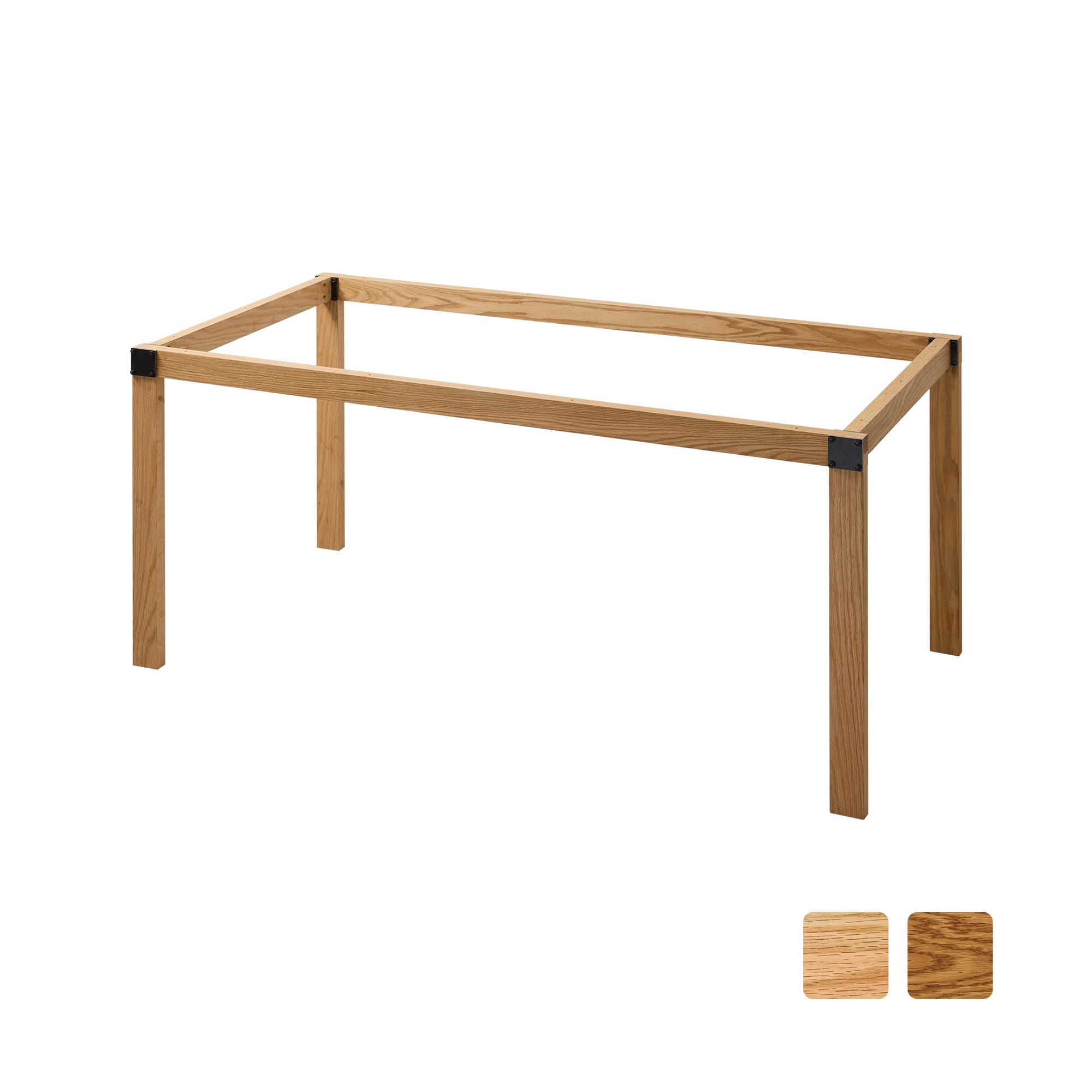 こちらは脚と幕板は全てレッドオークで、ジョイント金具の黒皮鉄が差し色として見えてくる仕様になっています。W1500サイズは4〜6人での使用におすすめです。