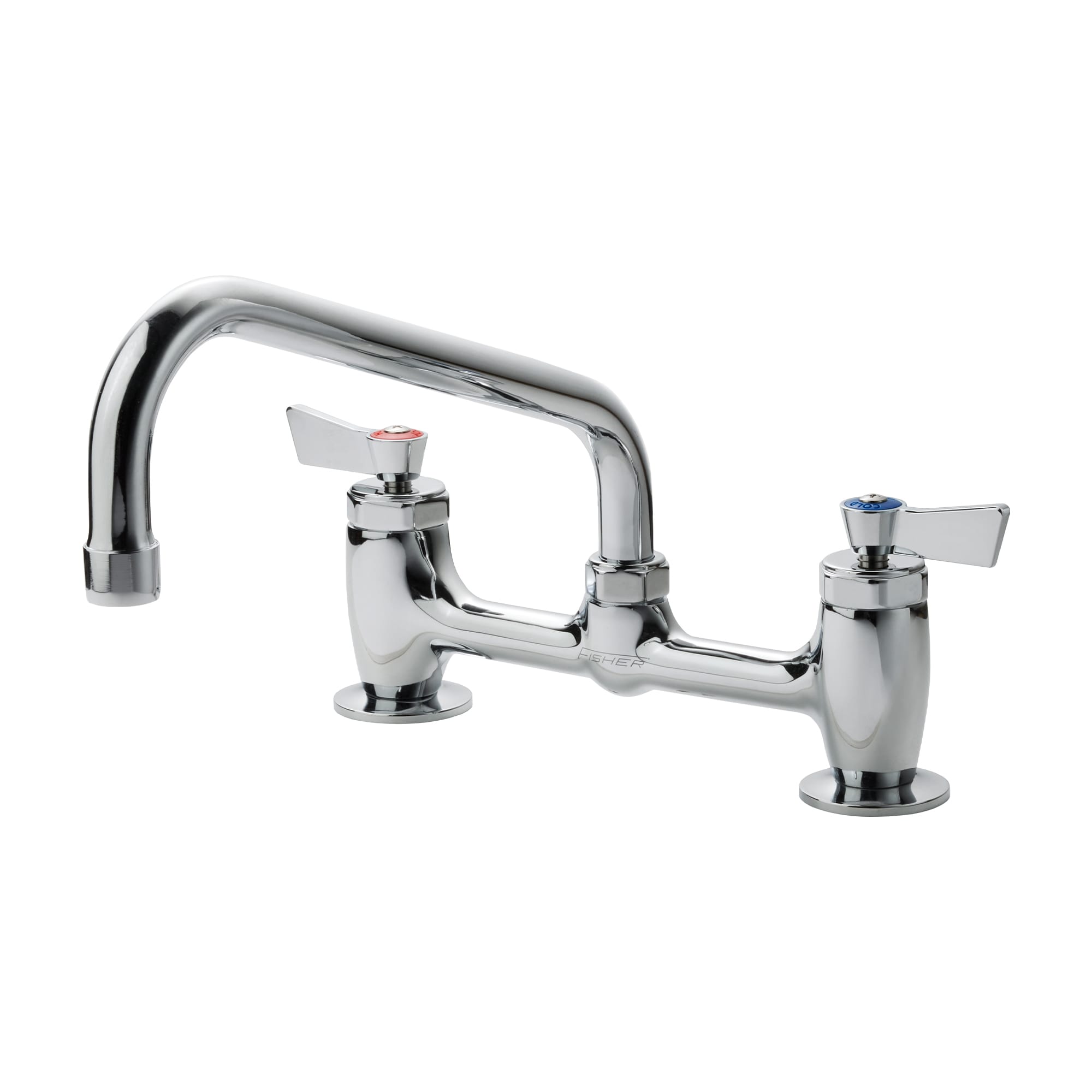 FISHER(フィッシャー)社というアメリカの厨房用水栓メーカーが製造している、台付け型のツインレバー混合栓です。