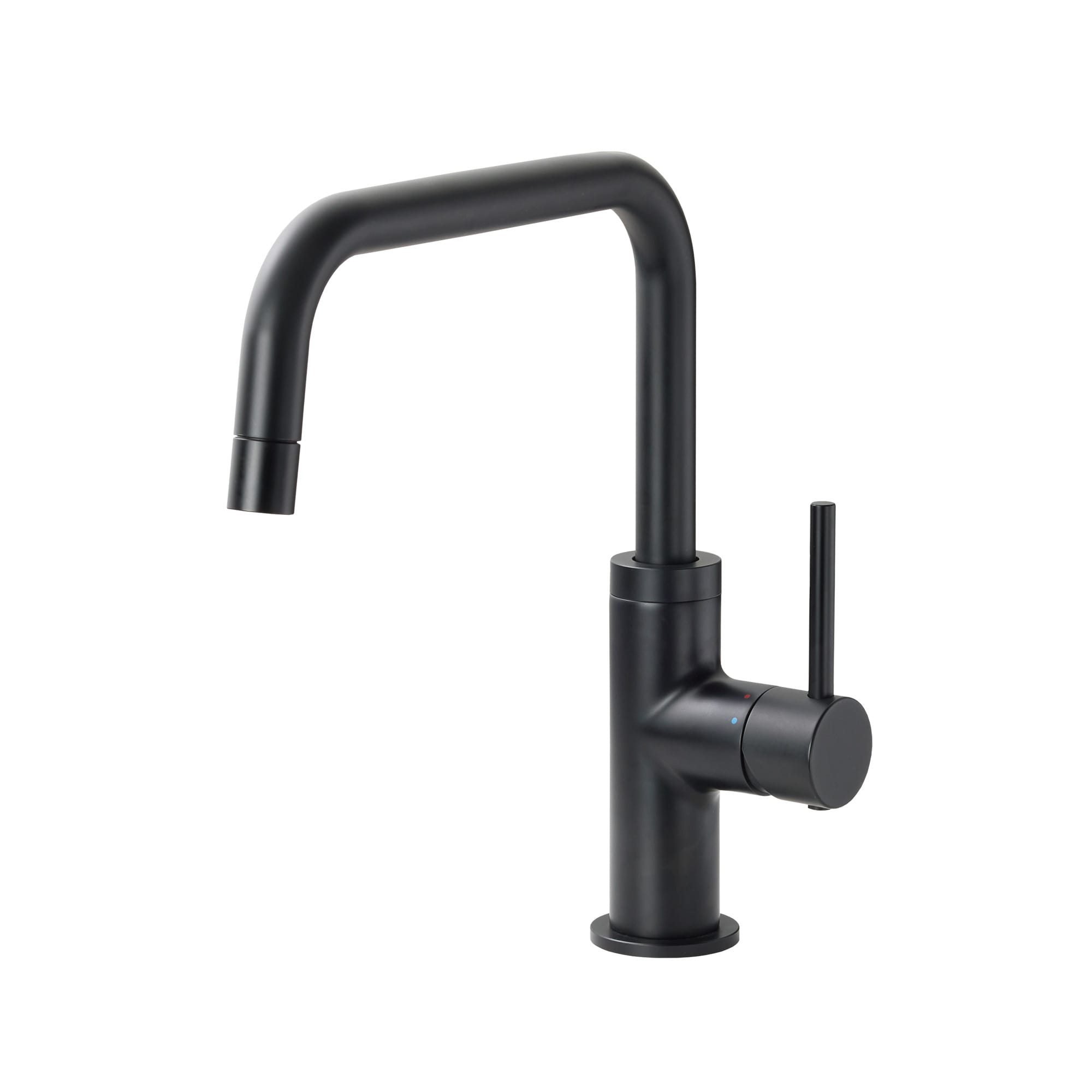 鉤型の径19mmの細いスパウトが特徴で、小さめのキッチンシンクや置き型の洗面ボウルに合うサイズ感です。
