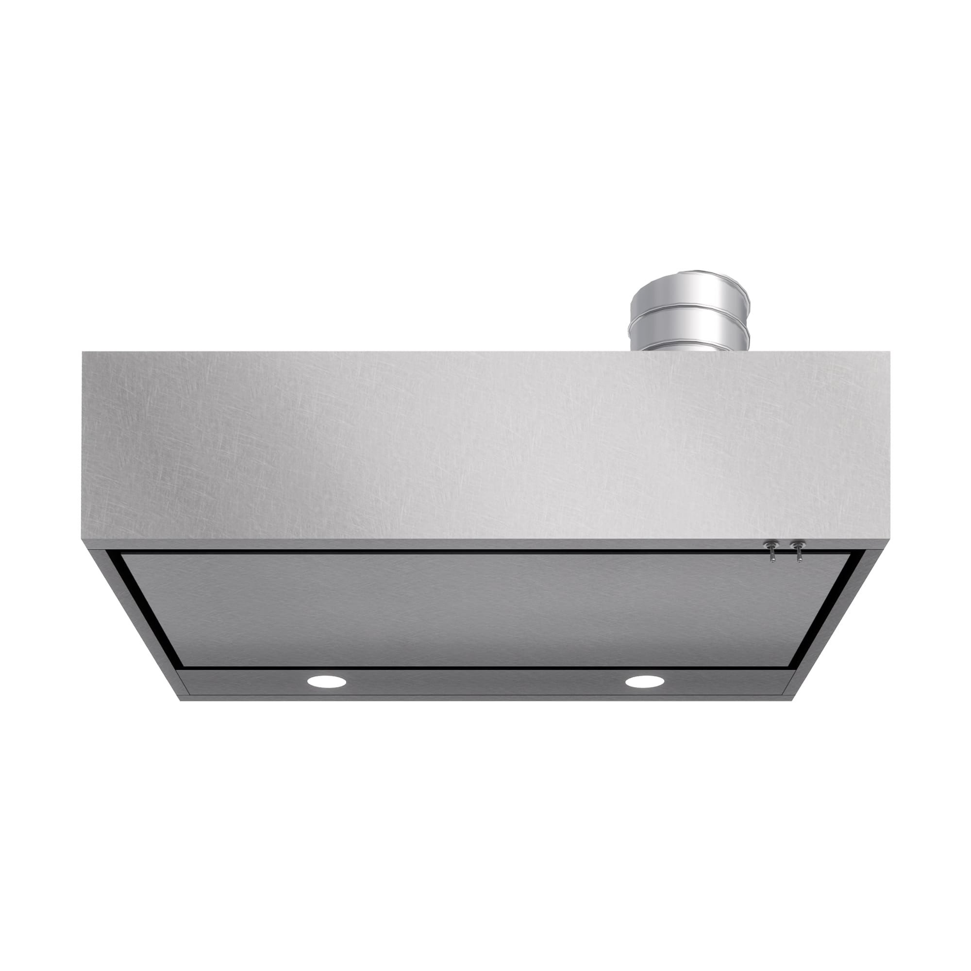 設備感をできる限り抑え、どこから見てもすっきり見えるようにデザインしました。フードの幅が900mmあるので、壁から離隔距離をとった3口から4口のコンロも十分に覆える大きさです。