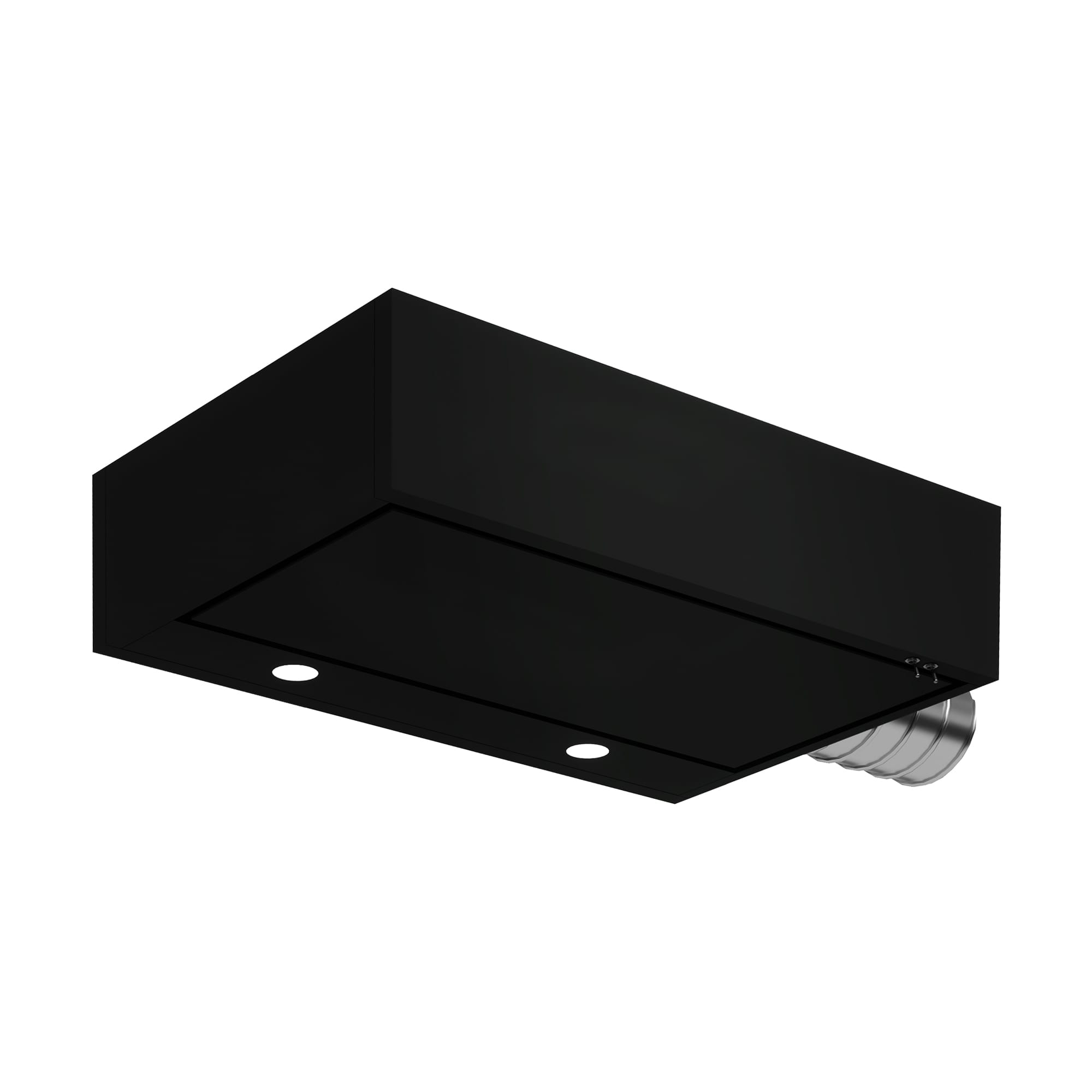 オープンなペニンシュラキッチンに特化した設計の、シンプルな箱型のサイドフードです。吹き抜けや斜め天井等、ボルト吊りがしづらい空間のキッチン計画をも自由にします。