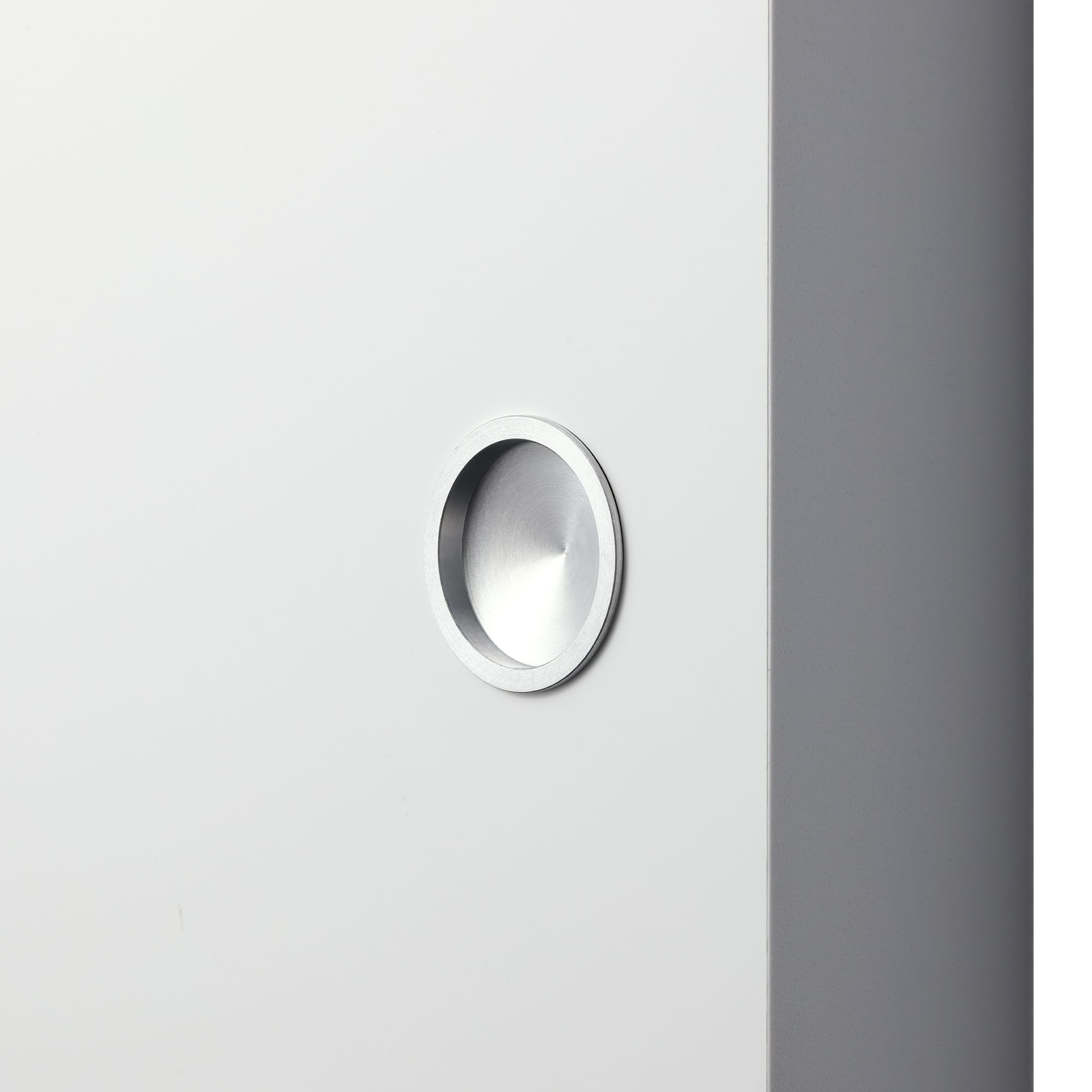指をかける部分は円錐状に窪んでいるため、その小さなサイズ感にもかかわらず、指先がしっかりと収まります。手掛けが小さくても、スムーズに開閉ができるレールを使えば「重くて開けられない」という心配はありません。