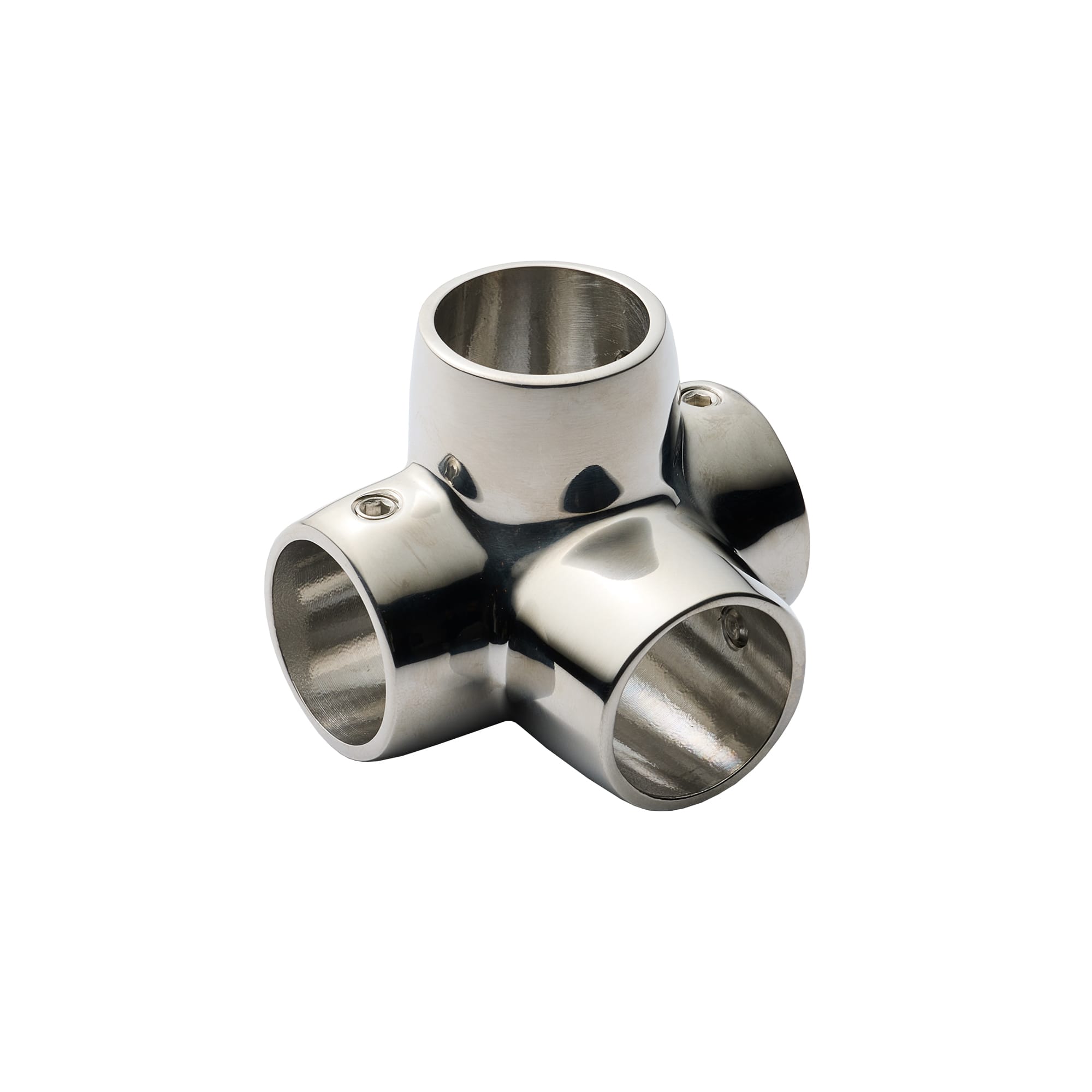 4方貫通エルボは、1本のパイプを貫通させることができるので、もう2本の垂直に分岐させるパイプの位置を自由に調整することができます。専用の水平パイプや吊りパイプと組み合わせてご利用ください。