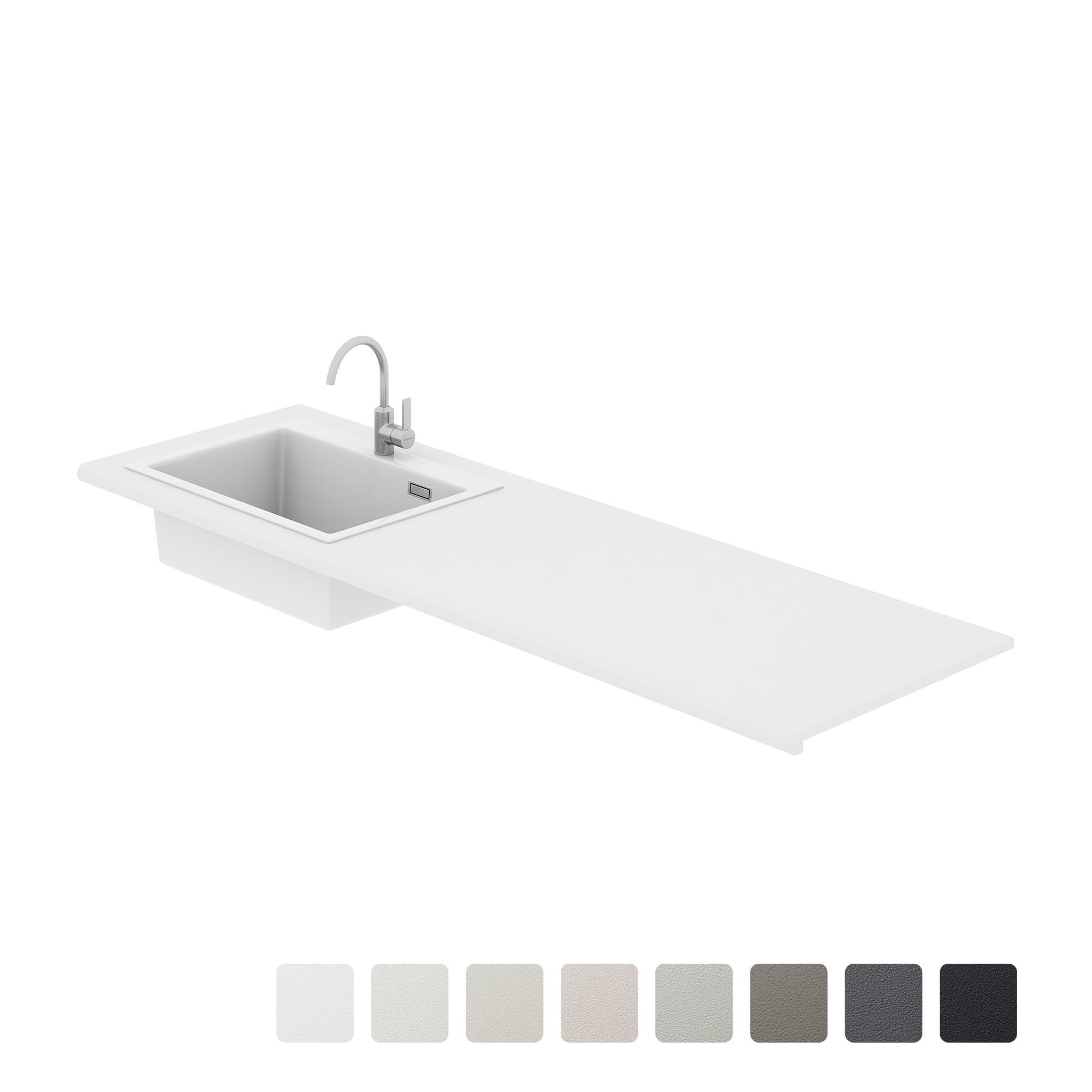 | 仕様 | シンク用開口:シングル.680×490mm / ダブル.840×480mm、角R10 (2サイズから選択) ※ クォーツシンク本体の寸法は別途商品ページより確認してください。 ※ 設置はオーバーシンクです。現場にて設置してください。 |