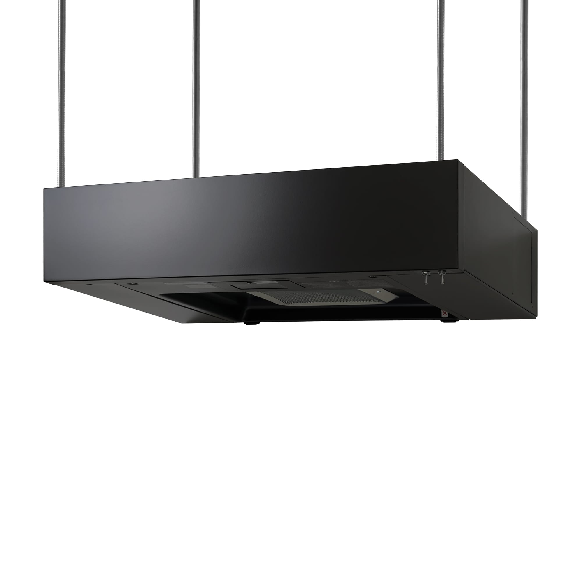 こちらのアイランド型タイプは、バックパネルを取り付けて、本体上面の天井吊りボルト用のノックアウトを開けることでアイランドキッチンやペニンシュラキッチンで使える仕様になります。吊りボルトは現場に合わせて別途ご用意ください。