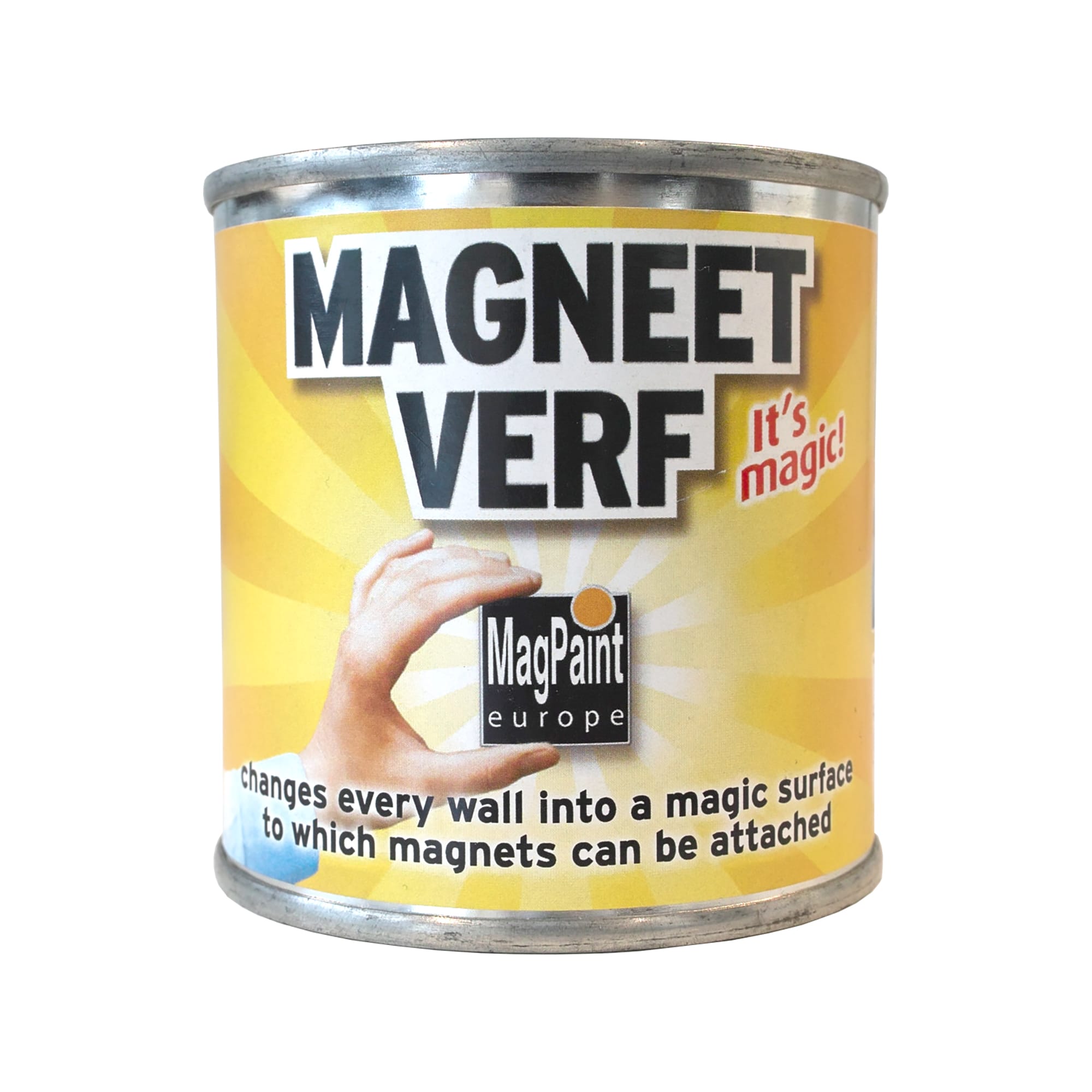 これは、マグネットがつくようになる塗料。鉄の粒子が塗料に混ざっているため、スチールの下地と同じ役割をしてくれます。塗るだけで、壁一面をマグネット対応にできちゃうんです。