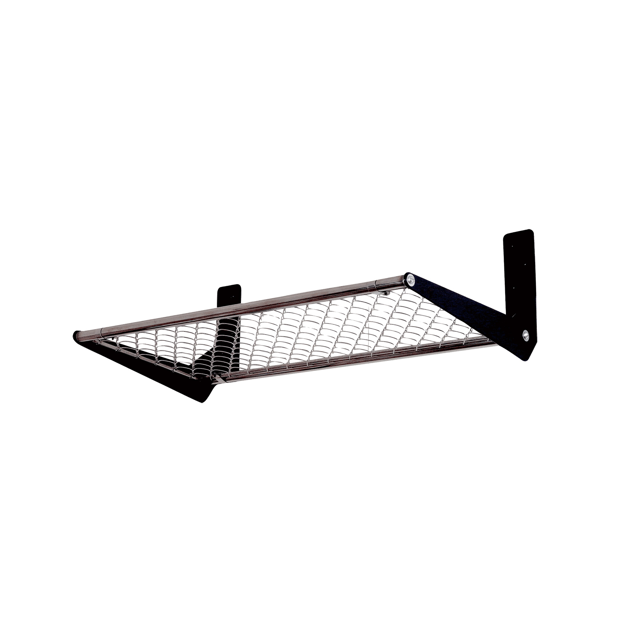 網の部分にステンレス製の菱形金網を使った壁付けのラックです。
