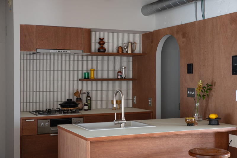棚受けや照明器具を無くすことで、より見せたいものに目が向く様に。