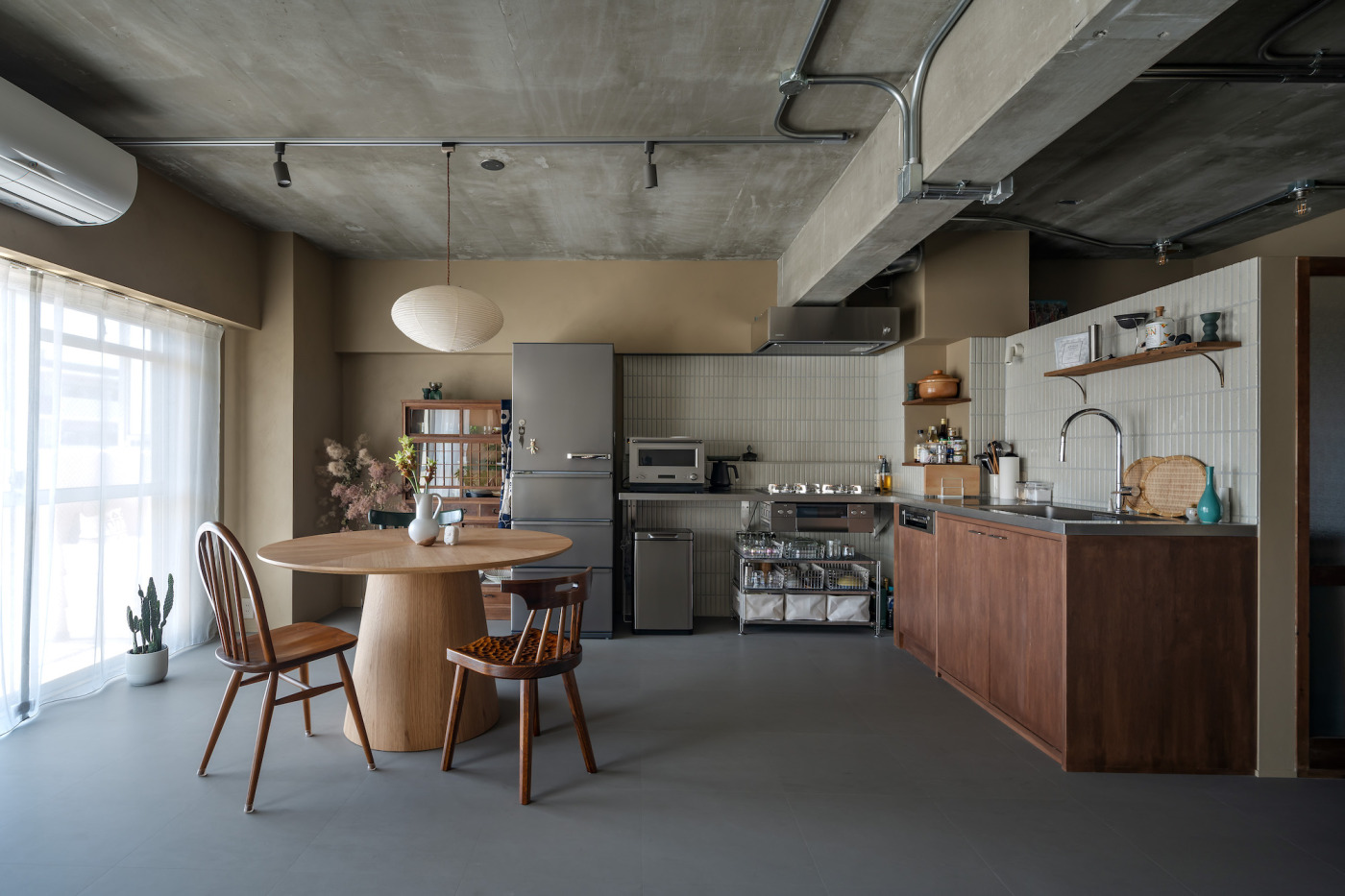 キッチンは、ラワンの収納部分とステンレスのオープン部分を組み合わせて構成。素材をミックスすることで、落ち着きすぎず、程よく軽やかな雰囲気に仕上がっています。