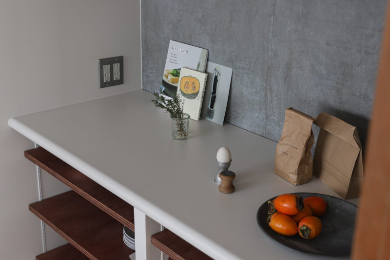 マットカラーのキッチン天板見付40を造作キッチン収納の天板で採用した事例です。