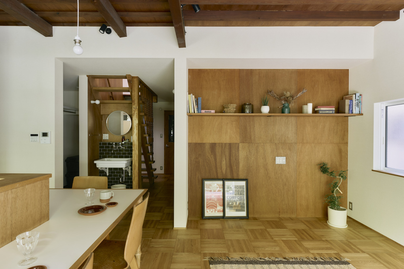 ラワンやスクールパーケットなど、築古の空気にすっと馴染む素材を取り入れ既存を生かして整えた、築46年の戸建てをリノベーション。