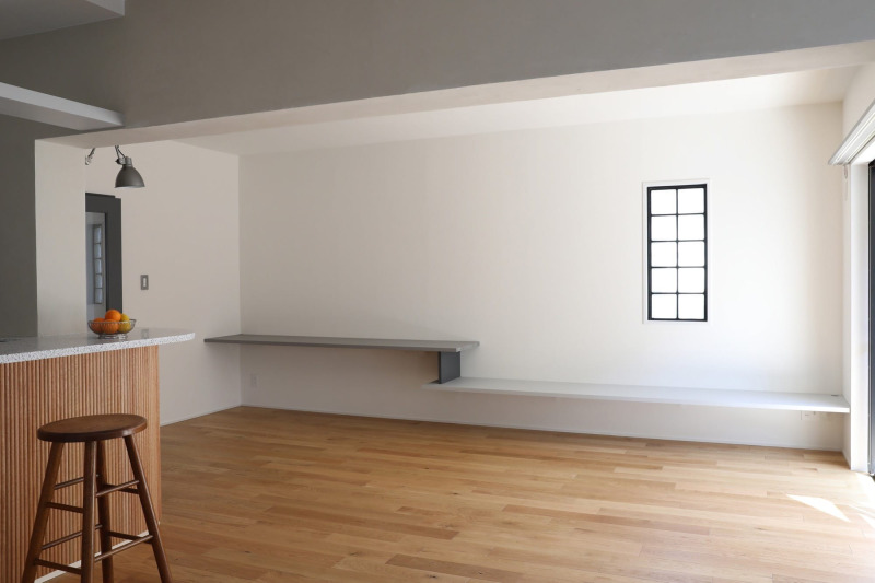 高さ70cmと40cmのカウンターを段違いで。それぞれ色味も変えてアクセントにしました。