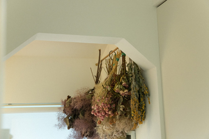 キッチン脇にあるパントリーへの入口。多角形のゲートでここから先はプリベート空間であることを伝えている。