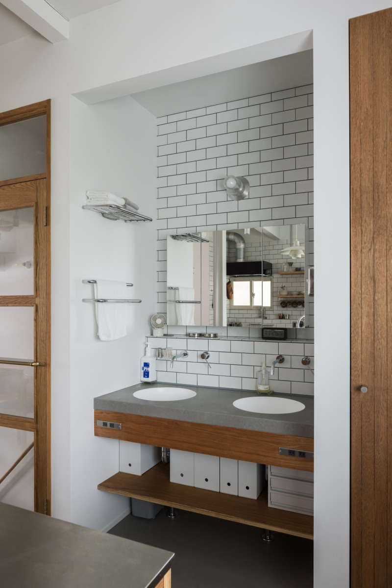 朝の支度が重なる時間でも混み合わないよう、2ボウルの洗面台を用意しました。