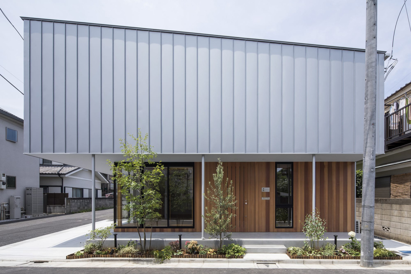 レッドシダーで包まれた1階は外に開く教室に。ガルバリウム鋼板貼りの2階はプライバシーが確保された住居スペースになっている。