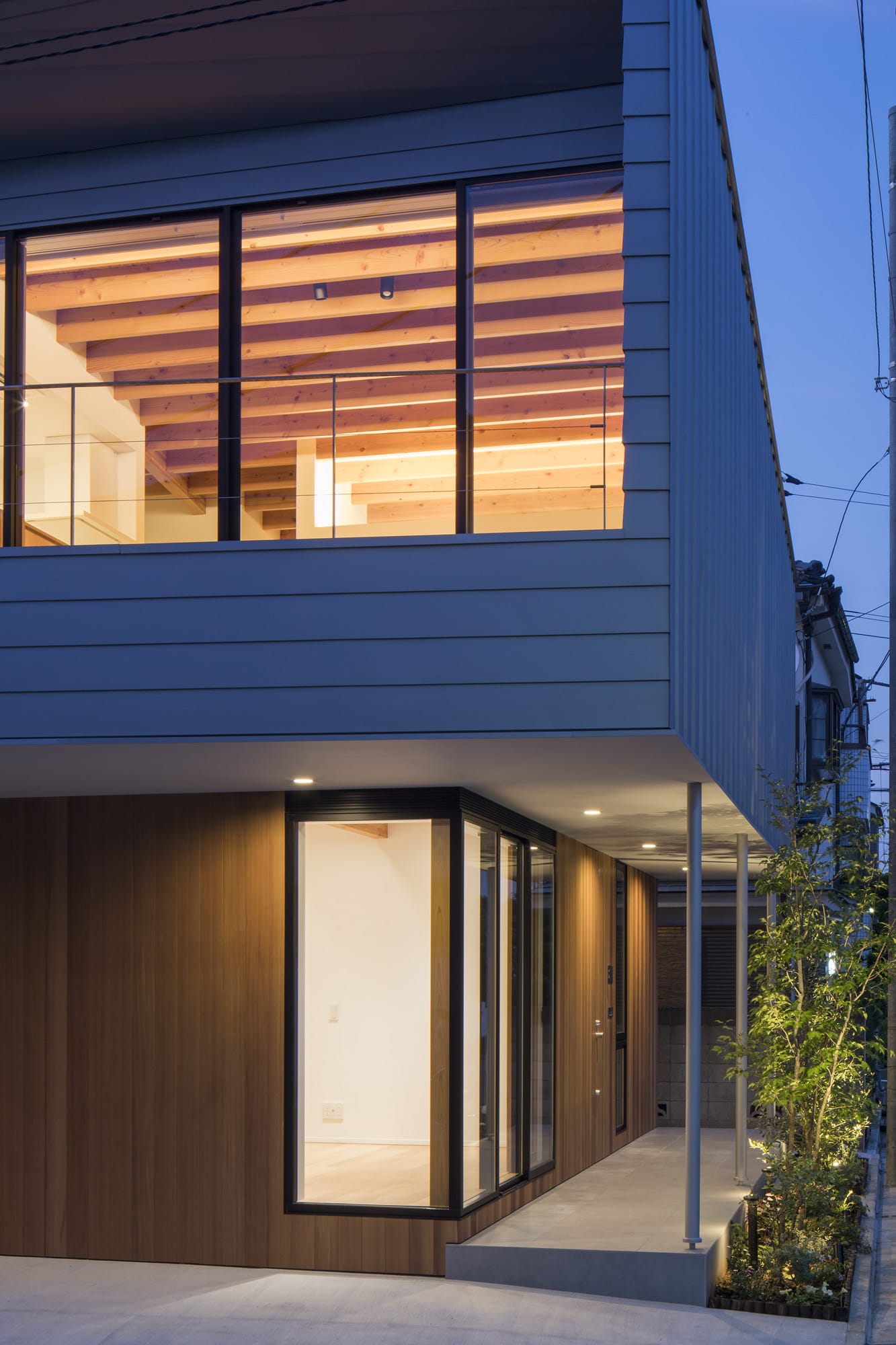 人通りの多い前面通路には植栽で緩衝帯を設けた。1階は施主が主催する教室として開いた場所に。