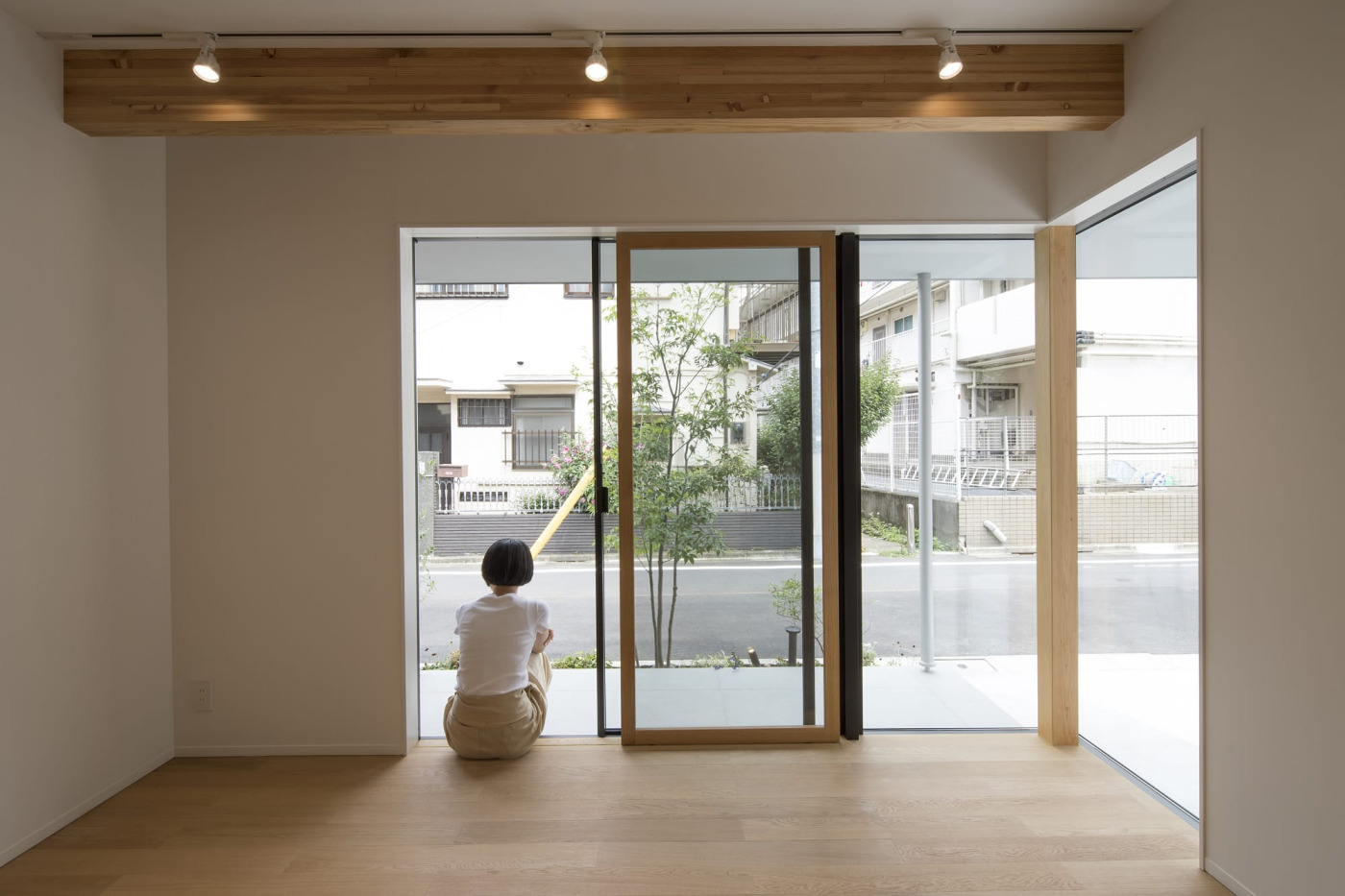 教室として利用する1階すペース。木製網戸は室内側につけることで、外観はすっきりと。