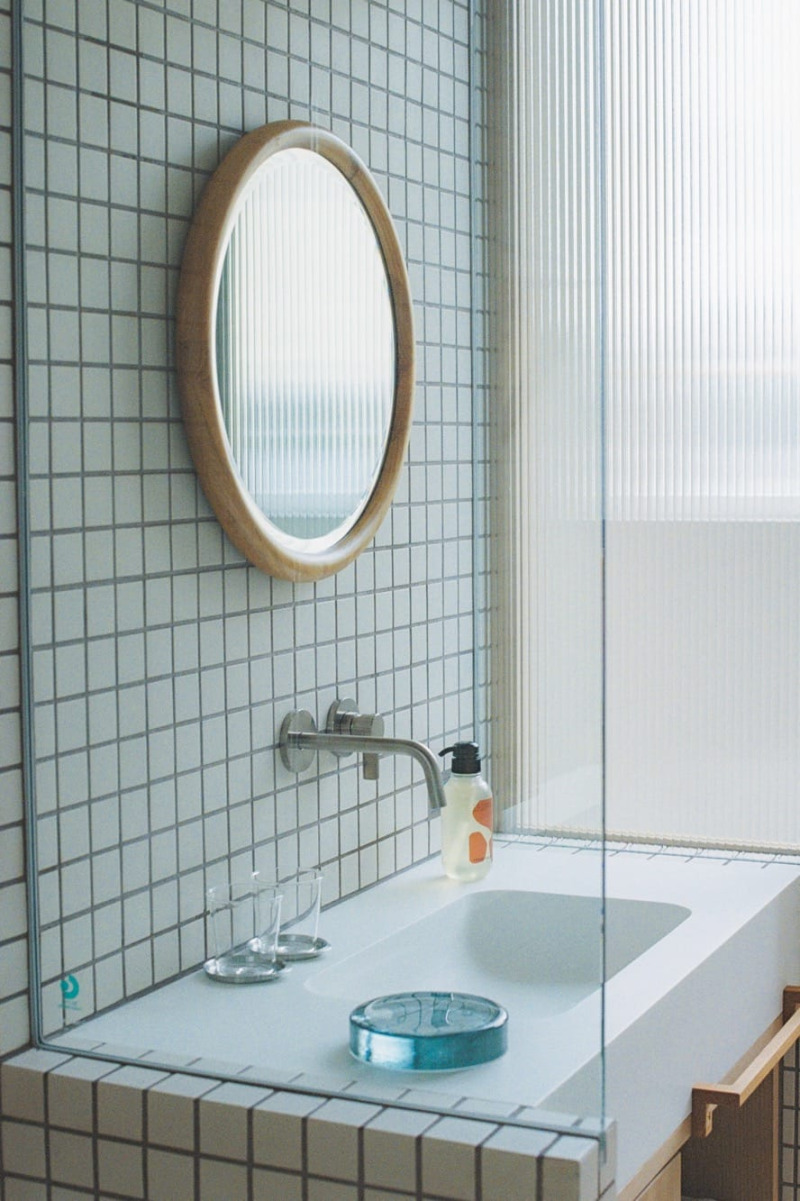 やわらかな白が光をぼんやりと反射する、あたたかな洗面。