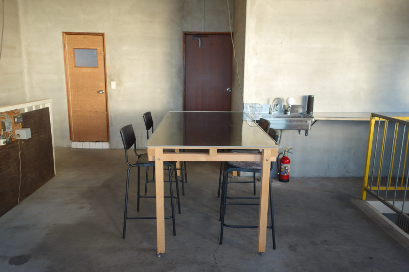 キャスターを付けて移動できるようにつくったテーブル。焼き肉をしたいと、天板にはキチンパネルを合わせて。