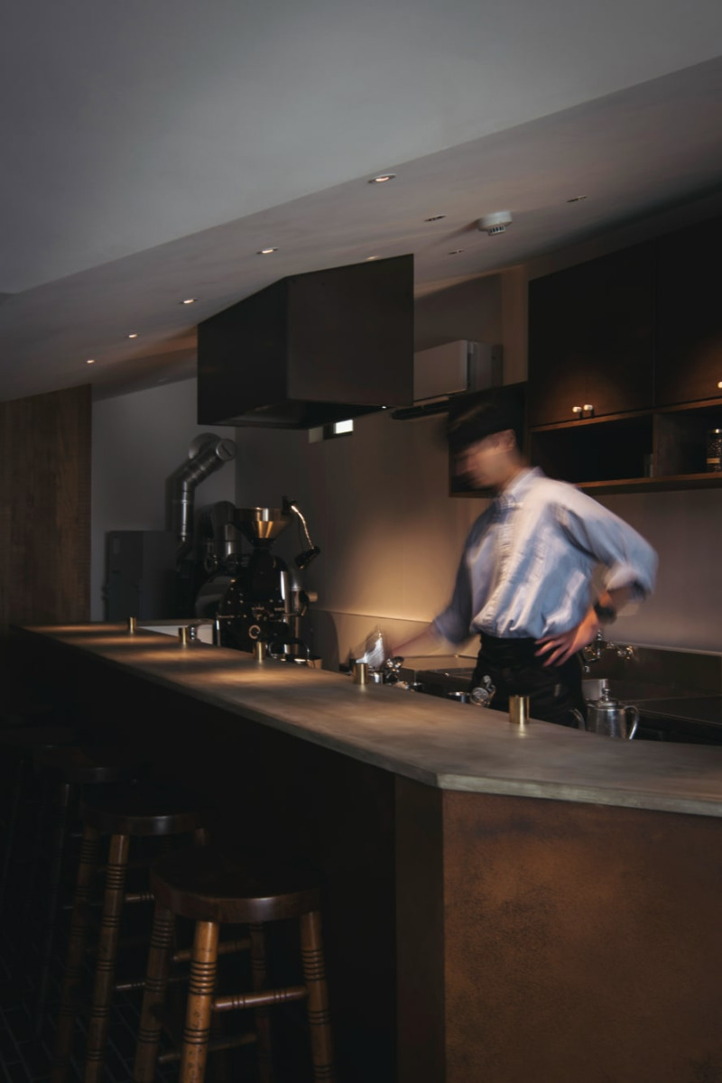 カウンターの下台は、錆びた鉄のような表情。これは、本物の鉄片を含んだ水性塗料で仕上げたもの。時を経たような味わいが生まれています。