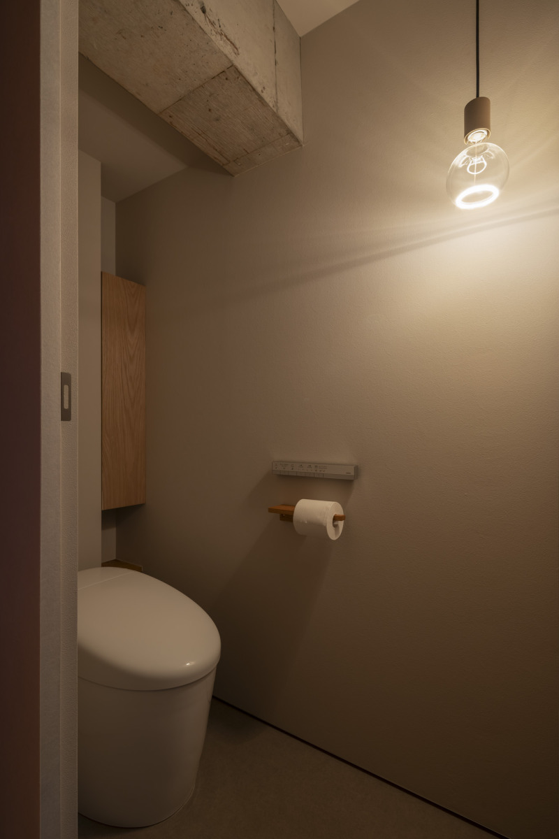 トイレは収納扉などの木部に合わせ、『木のペーパーホルダー』を採用。