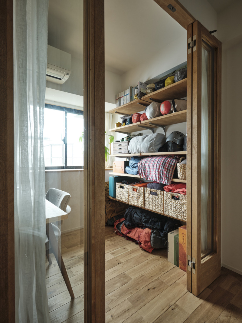 書斎には壁面棚を設置し、趣味の道具をたっぷり収納できるように。