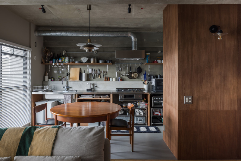 無骨な素材感のなかに、木のやわらかさがほどよく混ざり合う。ラフなのに、どこかほっとする空気が流れる空間です。