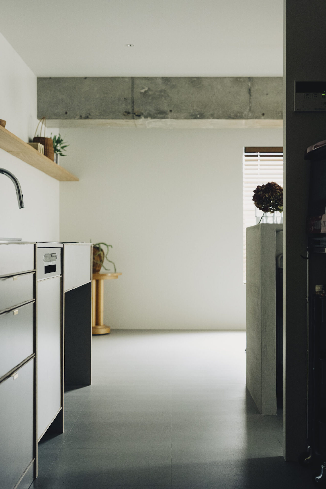 キッチンは、扉付きで隠す収納と、よく使うものをさっと取り出せるオープン収納のバランスを考え、オリジナルで造作しました。