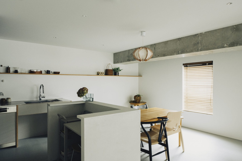 ダイニング横には、腰高の壁で囲った小さな目隠しスペースを設えました。 おもちゃ収納にしたり、デスクを置いたり、ドリンクカウンターにしてみたり。 暮らしに合わせて使い方が変わっていく、あそびのある余白です。