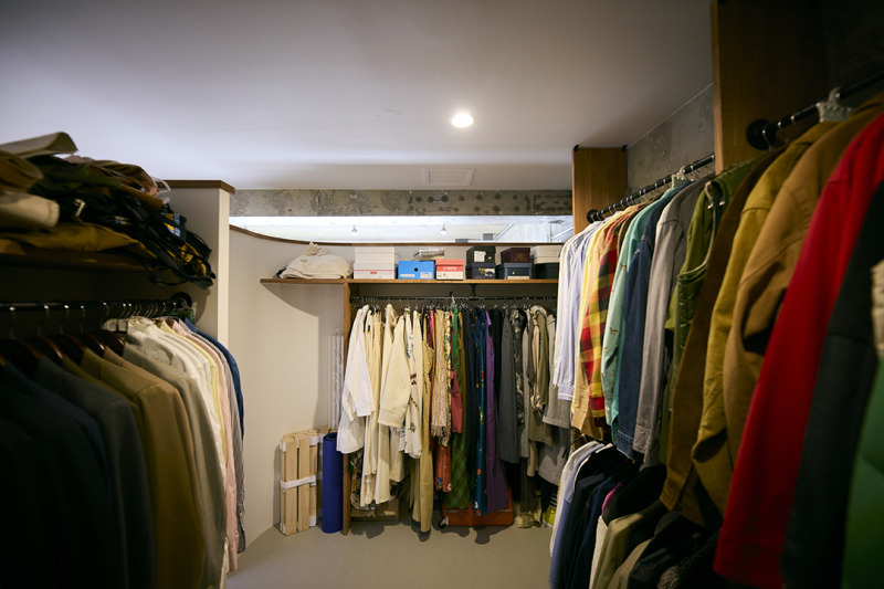 リビングに隣接したウォークインクローゼット。壁を天井までつけないことで、視界の抜けを生み出しています。