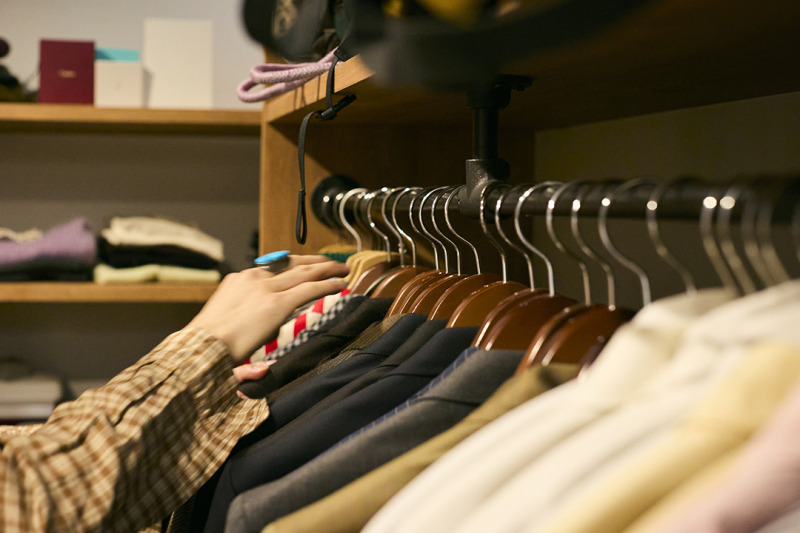 大容量のクローゼットには、肉厚のアイアンを使ったハンガーパイプを。