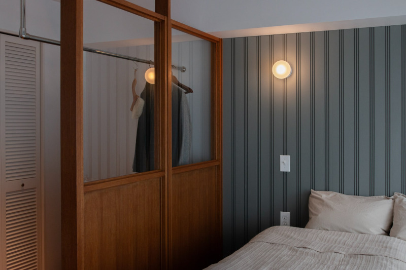 じわりと滲むような明かりのフロストガラス照明を枕元に。強すぎない明かりは、夜のくつろぎの一時を心地よくしてくれそう。