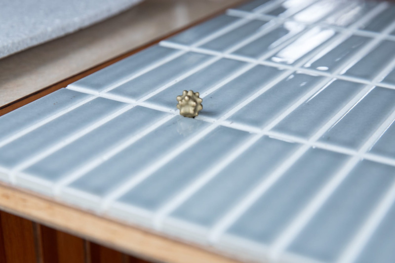 間違えて貫通させてしまった穴に、ちょこんと添えた真鍮の金平糖。失敗を遊び心でカバーした、見るたびに愛着の湧く一角です。