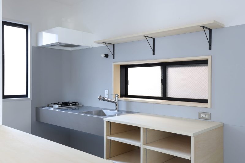 棚やカウンターはシナ材で統一。全体がクールになりすぎないよう、木の温かみを加えています。