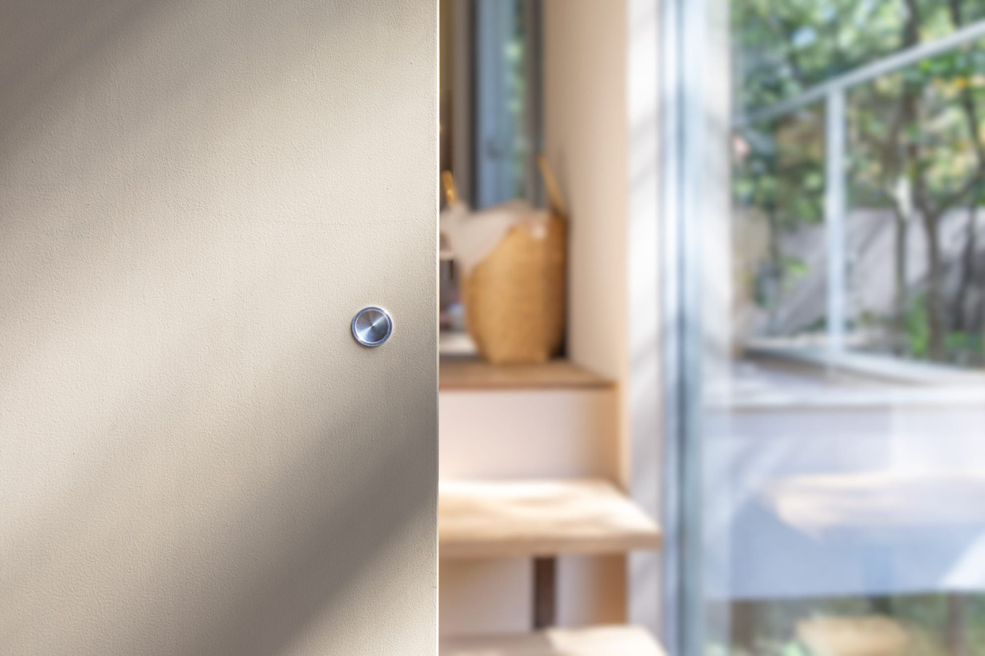 戸の前に立つと、秘密の部屋への入口のような、小さな凹みが目に留まります。