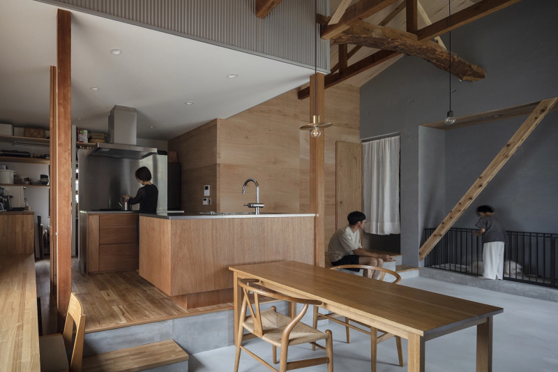 ところどころに設けられた段差は腰かけるのにちょうどよく、お茶を飲んだり、くつろいだり。家族がそれぞれ好きな場所に座り、思い思いに過ごせる小さな居場所が、家の中にいくつも生まれています。