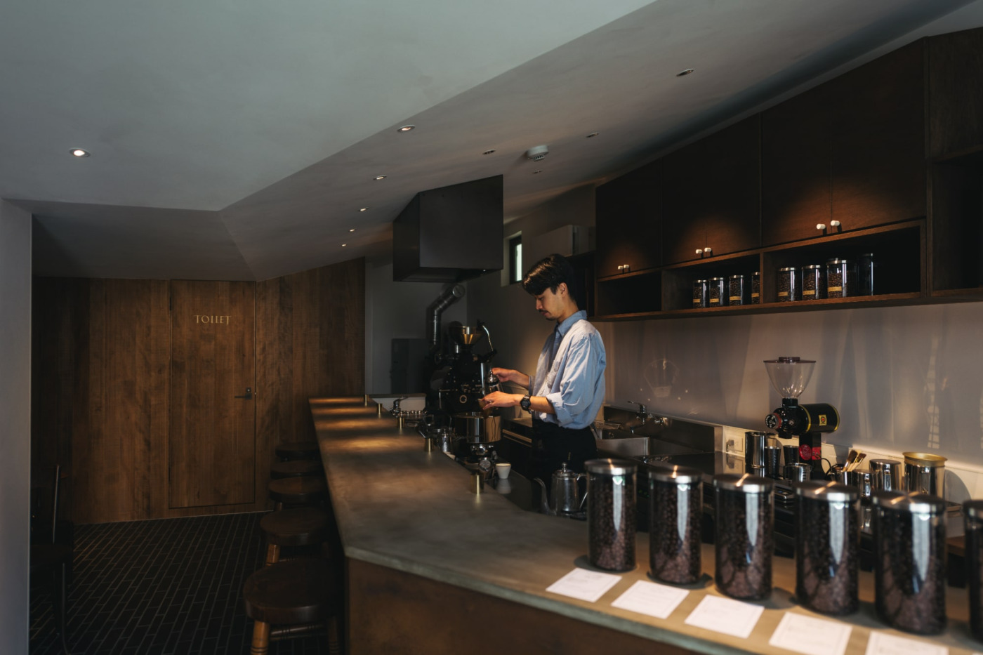 店主がコーヒーを淹れるカウンターの照明も、最低限に。カウンター席に座り、スポットライトのような明かりの下、じっくり丁寧にドリップされるコーヒーを眺める——そんな過ごし方も、乙な楽しみ方です。
