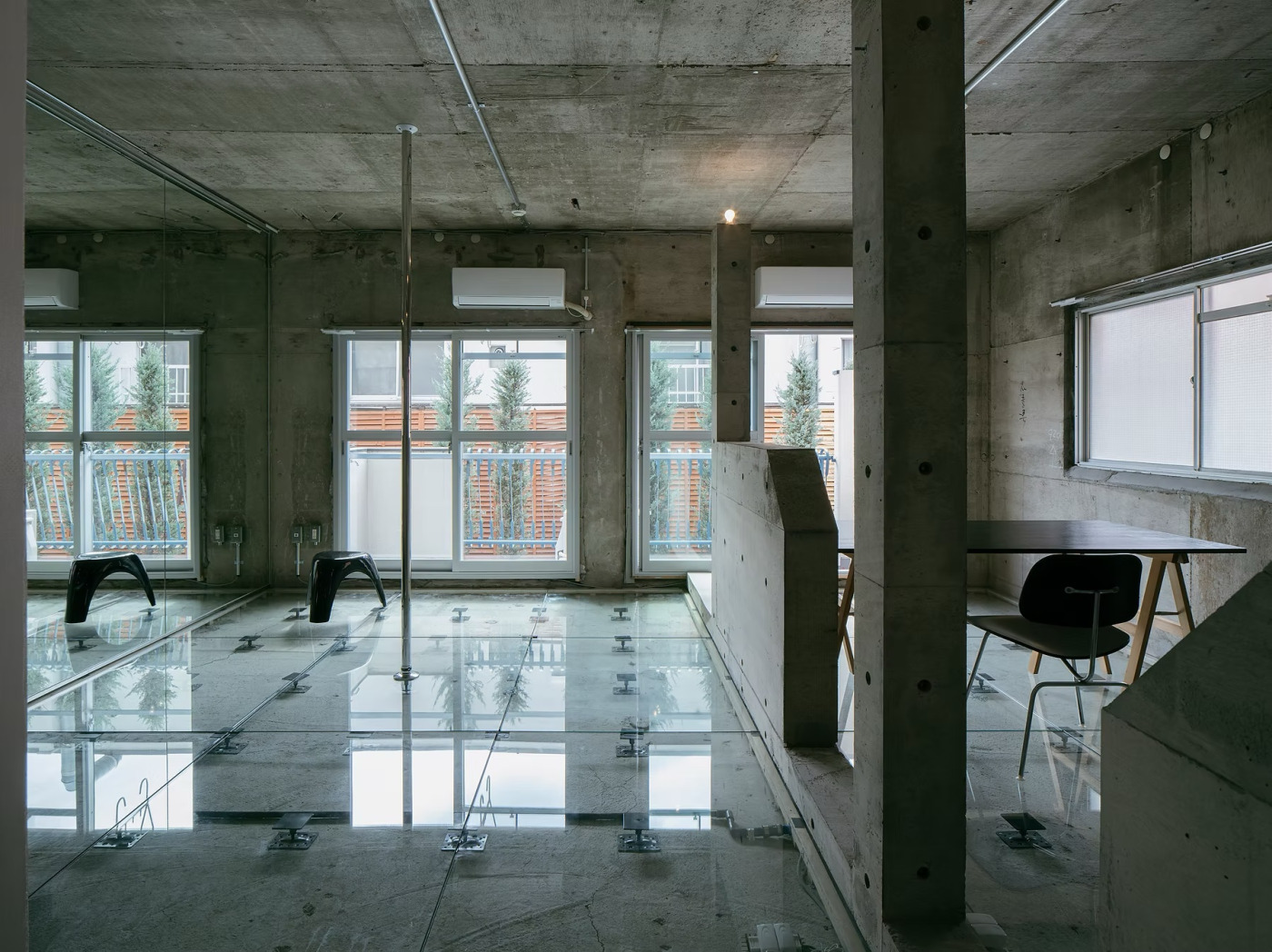 コンクリートの剥き出しの強さと、ポールダンスのしなやかな身体性。正反対のようで、不思議とどこか通じるものがある。その感覚を手がかりに、設計者である塩入さん・矢﨑さんは、“まだ見ぬポールダンサー”のための空間づくりをスタートさせました。