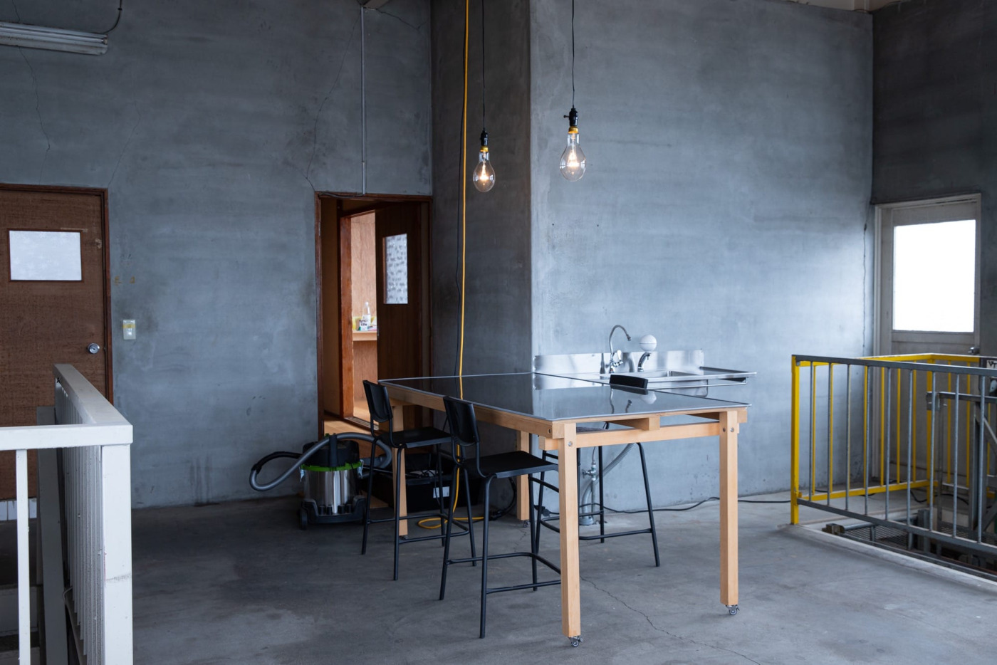 2階に上がると広がるのが、この物件のメインスペース。元倉庫の広さを活かしたLDKの様な場所です。この高い天井を見た瞬間「みんなで集まる場所はここだろうな」とイメージが湧きました。